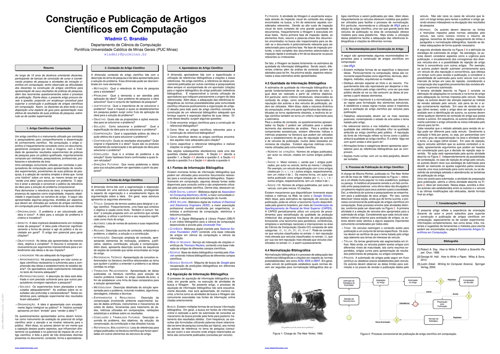 Over 15 years of teaching, advising students and coordinating scientific research activities and projects in computer science, we have observed the difficulties of students to write scientific papers to present the results of their research practices. In addition, they repeatedly have doubts about the publishing process. In this article we propose a conceptual framework to support the writing and publishing of scientific papers in computer science, providing a kind of guide for computer science students to effectively present the results of their research practices, particularly for experimental research.