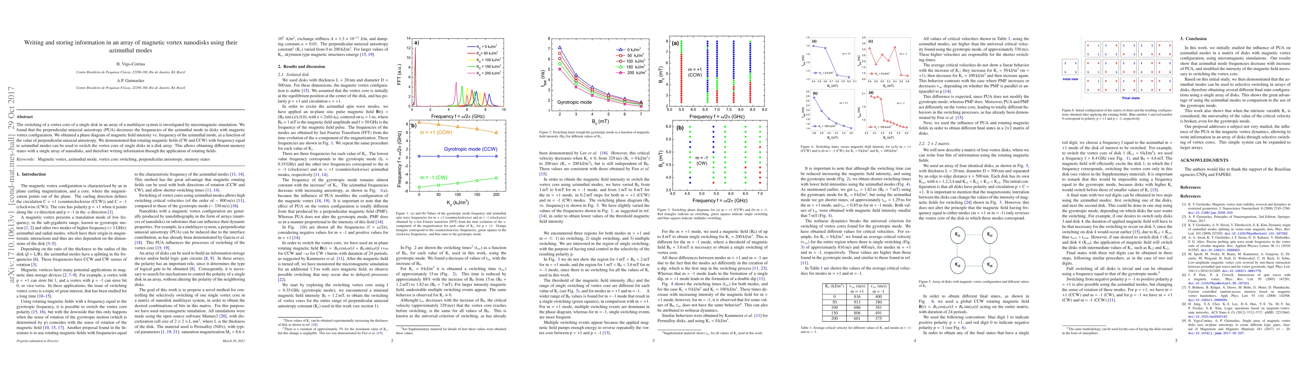 The paper presents a detailed micromagnetic simulation study on the influence of PUA on azimuthal modes in magnetic vortex nanodisks, demonstrating a new approach for information storage and retrieval.