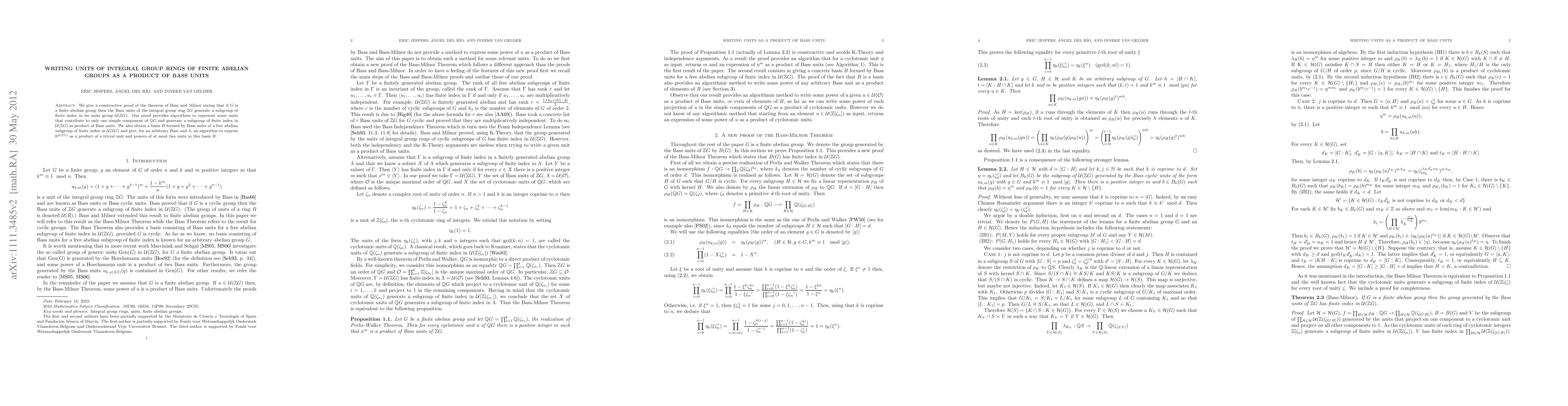 We give a constructive proof of the theorem of Bass and Milnor saying that if $G$ is a finite abelian group then the Bass units of the integral group ring $\Z G$ generate a subgroup of finite index in its units group $\U(\Z G)$. Our proof provides algorithms to represent some units that contribute to only one simple component of $\Q G$ and generate a subgroup of finite index in $\U(\Z G)$ as product of Bass units. We also obtain a basis $B$ formed by Bass units of a free abelian subgroup of finite index in $\U(\Z G)$ and give, for an arbitrary Bass unit $b$, an algorithm to express $b^{\varphi(|G|)}$ as a product of a trivial unit and powers of at most two units in this basis $B$.
