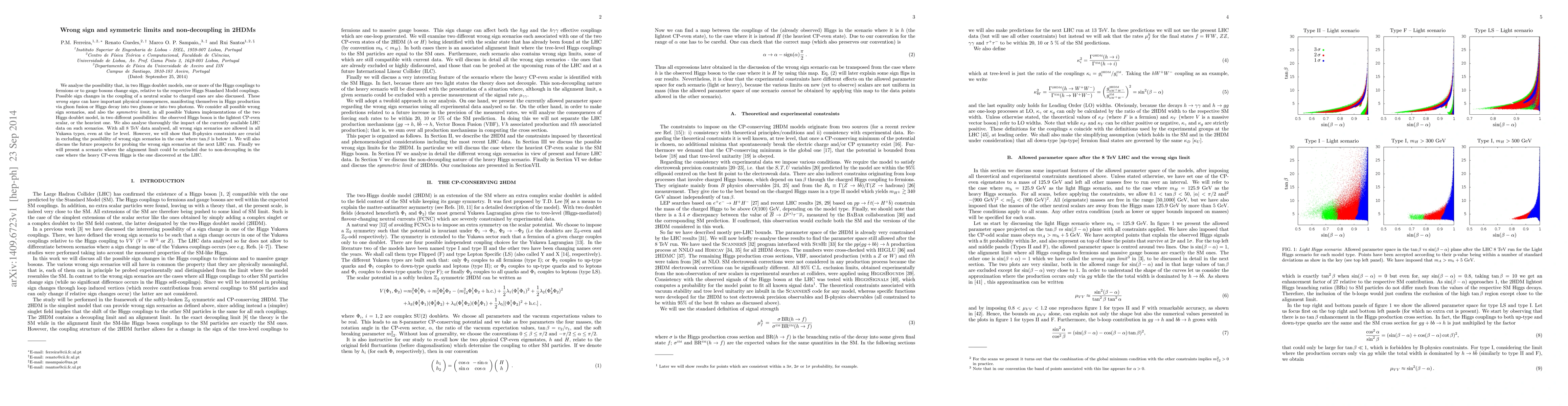 We analyse the possibility that, in two Higgs doublet models, one or more of the Higgs couplings to fermions or to gauge bosons change sign, relative to the respective Higgs Standard Model couplings. Possible sign changes in the coupling of a neutral scalar to charged ones are also discussed. These \textit{wrong signs} can have important physical consequences, manifesting themselves in Higgs production via gluon fusion or Higgs decay into two gluons or into two photons. We consider all possible wrong sign scenarios, and also the \textit{symmetric limit}, in all possible Yukawa implementations of the two Higgs doublet model, in two different possibilities: the observed Higgs boson is the lightest CP-even scalar, or the heaviest one. We also analyse thoroughly the impact of the currently available LHC data on such scenarios. With all 8 TeV data analysed, all wrong sign scenarios are allowed in all Yukawa types, even at the 1$\sigma$ level. However, we will show that B-physics constraints are crucial in excluding the possibility of wrong sign scenarios in the case where $\tan \beta$ is below 1. We will also discuss the future prospects for probing the wrong sign scenarios at the next LHC run. Finally we will present a scenario where the alignment limit could be excluded due to non-decoupling in the case where the heavy CP-even Higgs is the one discovered at the LHC.