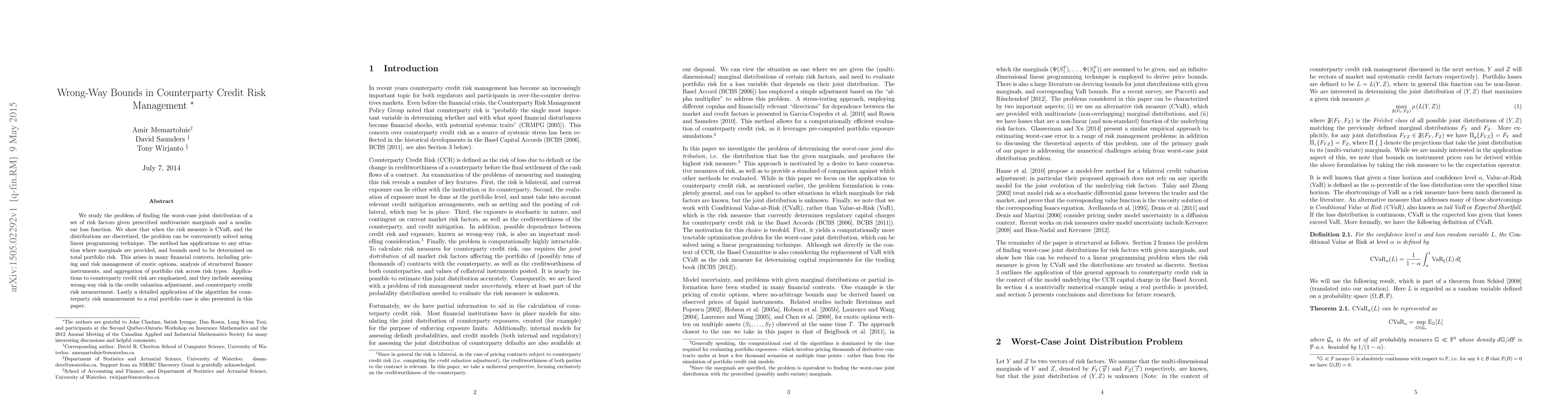 We study the problem of finding the worst-case joint distribution of a set of risk factors given prescribed multivariate marginals and a nonlinear loss function. We show that when the risk measure is CVaR, and the distributions are discretized, the problem can be conveniently solved using linear programming technique. The method has applications to any situation where marginals are provided, and bounds need to be determined on total portfolio risk. This arises in many financial contexts, including pricing and risk management of exotic options, analysis of structured finance instruments, and aggregation of portfolio risk across risk types. Applications to counterparty credit risk are emphasized, and they include assessing wrong-way risk in the credit valuation adjustment, and counterparty credit risk measurement. Lastly a detailed application of the algorithm for counterparty risk measurement to a real portfolio case is also presented in this paper.
