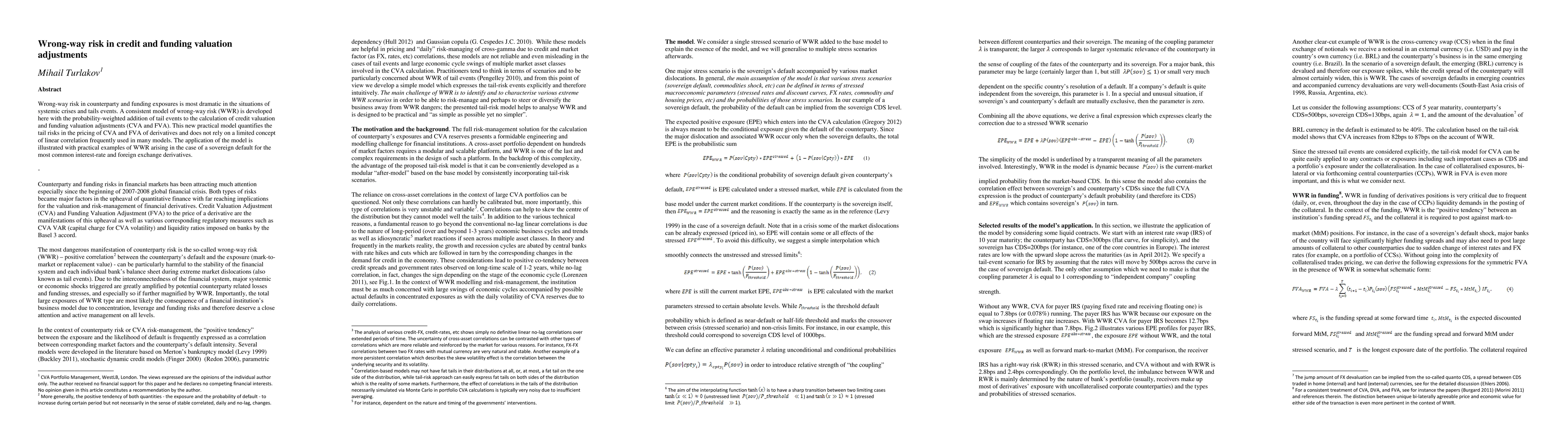 This paper develops a consistent model for wrong-way risk in credit and funding valuation adjustments, incorporating tail events to better quantify risks during systemic crises. It provides practical examples illustrating the application of the model to interest-rate and foreign exchange derivatives in scenarios like sovereign defaults.