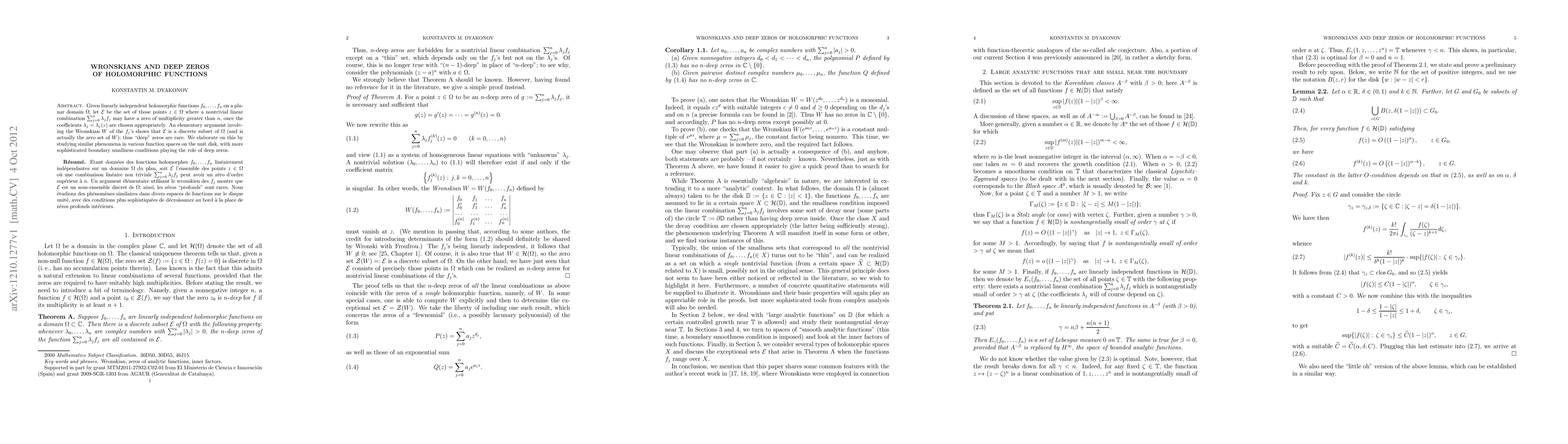 This paper investigates the set of points where a linear combination of linearly independent holomorphic functions can have zeros of multiplicity greater than the number of functions, demonstrating that such "deep" zeros are rare and are actually the zero set of the Wronskian of the functions. It further explores analogous phenomena in function spaces on the unit disk with boundary conditions.