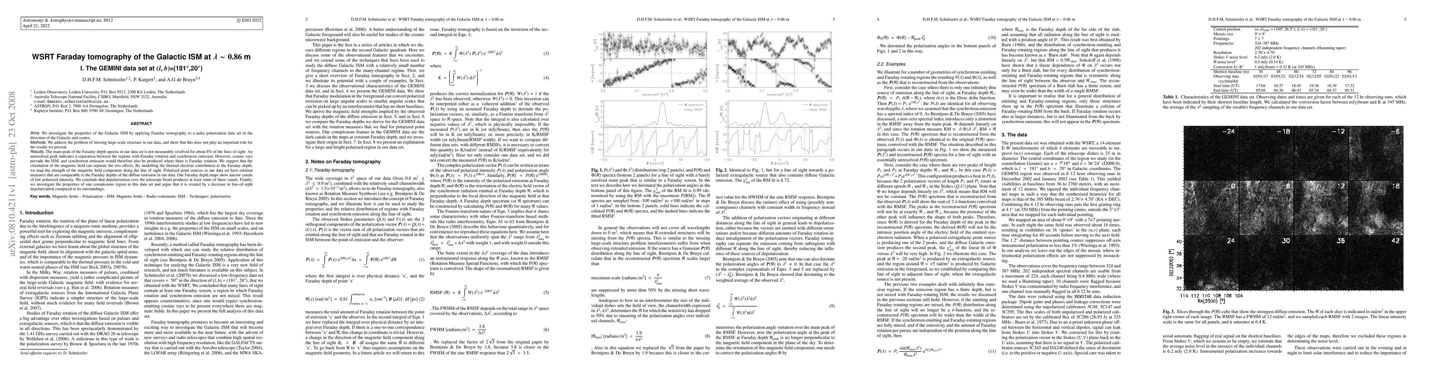 We investigate the properties of the Galactic ISM by applying Faraday tomography to a radio polarization data set in the direction of the Galactic anti-centre. We address the problem of missing large-scale structure in our data, and show that this does not play an important role for the results we present. The main peak of the Faraday depth spectra in our data set is not measurably resolved for about 8% of the lines of sight. An unresolved peak indicates a separation between the regions with Faraday rotation and synchrotron emission. However, cosmic rays pervade the ISM, and synchrotron emission would therefore also be produced where there is Faraday rotation. We suggest that the orientation of the magnetic field can separate the two effects. By modelling the thermal electron contribution to the Faraday depth, we map the strength of the magnetic field component along the line of sight. Polarized point sources in our data set have rotation measures that are comparable to the Faraday depths of the diffuse emission in our data. Our Faraday depth maps show narrow canals of low polarized intensity. We conclude that depolarization over the telescope beam produces at least some of these canals. Finally, we investigate the properties of one conspicuous region in this data set and argue that it is created by a decrease in line-of-sight depolarization compared to its surroundings.