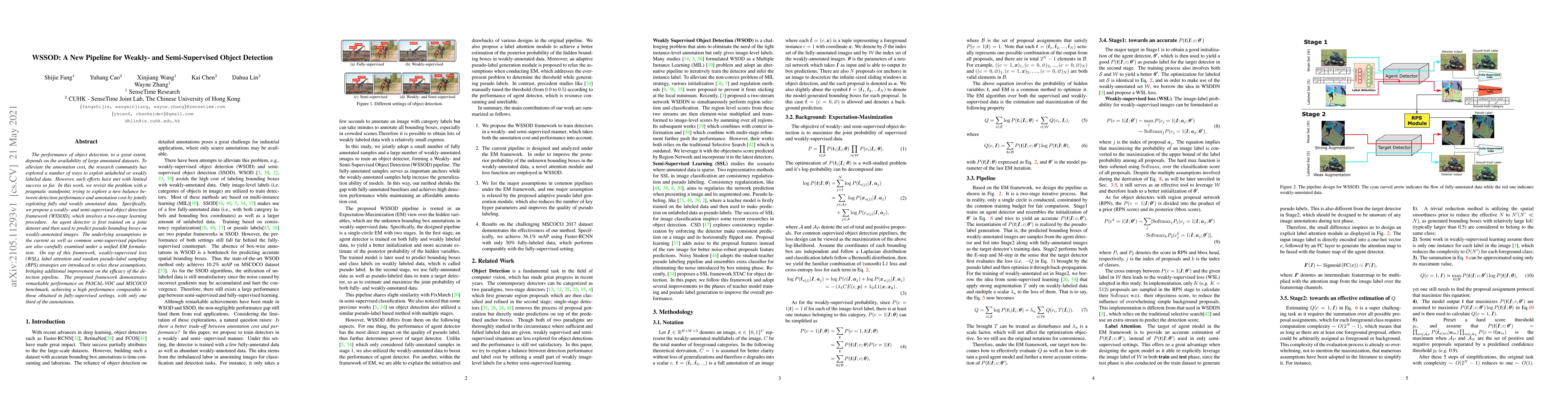 The paper introduces WSSOD, a new framework for weakly- and semi-supervised object detection that balances detection performance with annotation cost. It employs a two-stage learning process and innovative techniques like WSL, label attention, and RPS to achieve high performance with minimal annotations.