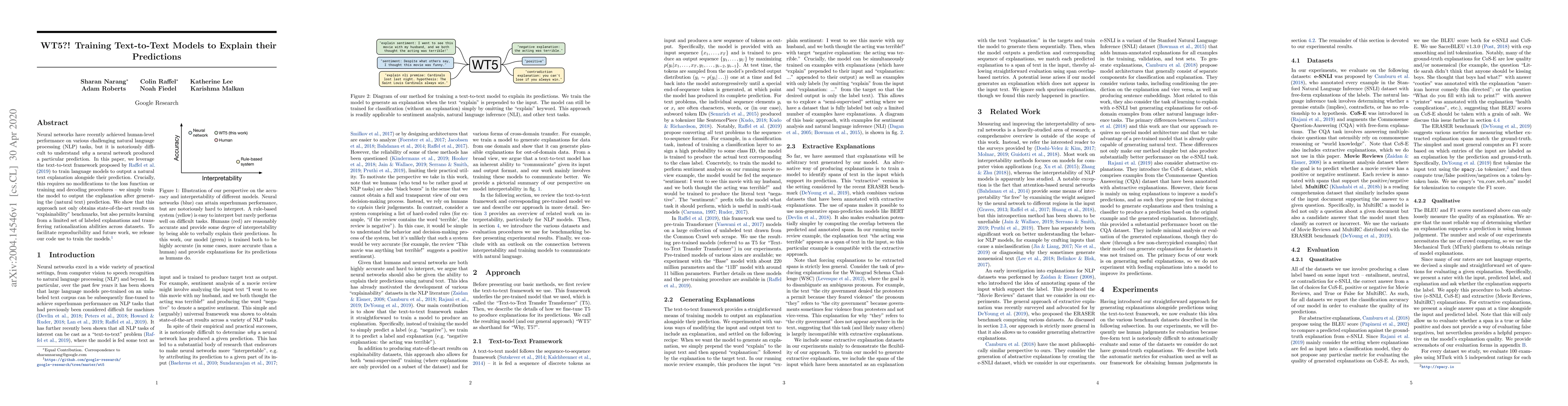 The paper demonstrates a straightforward method to train text-to-text models to generate explanations for their predictions, achieving state-of-the-art results on various benchmark datasets.