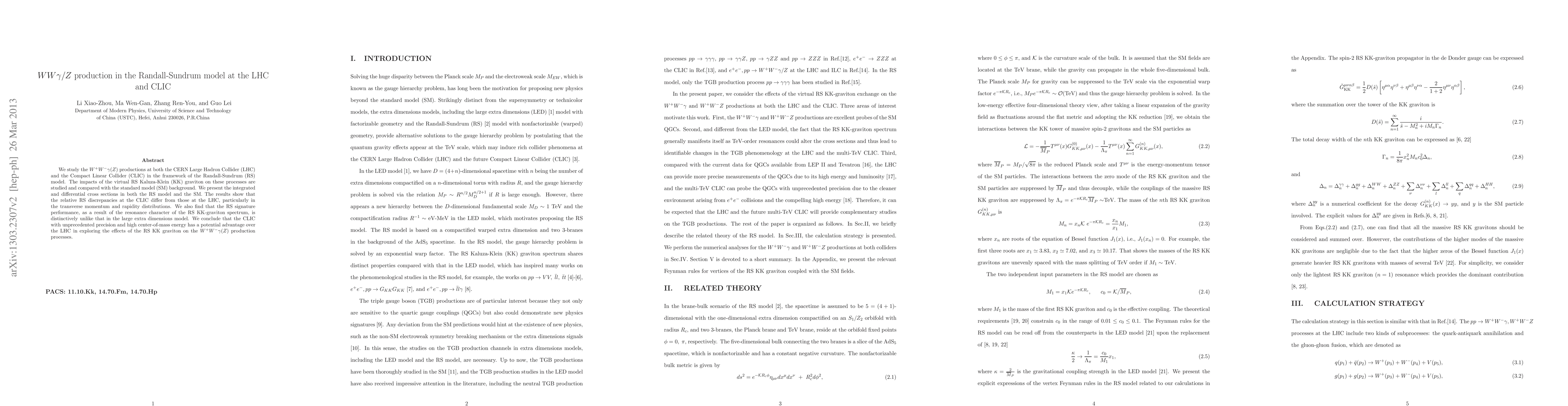 This study investigates $W^+W^-\gamma(Z)$ production in the Randall-Sundrum model at the LHC and CLIC, comparing the impacts of the RS KK graviton to the standard model. The results indicate CLIC's superior precision and higher energy could better reveal RS model discrepancies, especially in momentum and rapidity distributions.