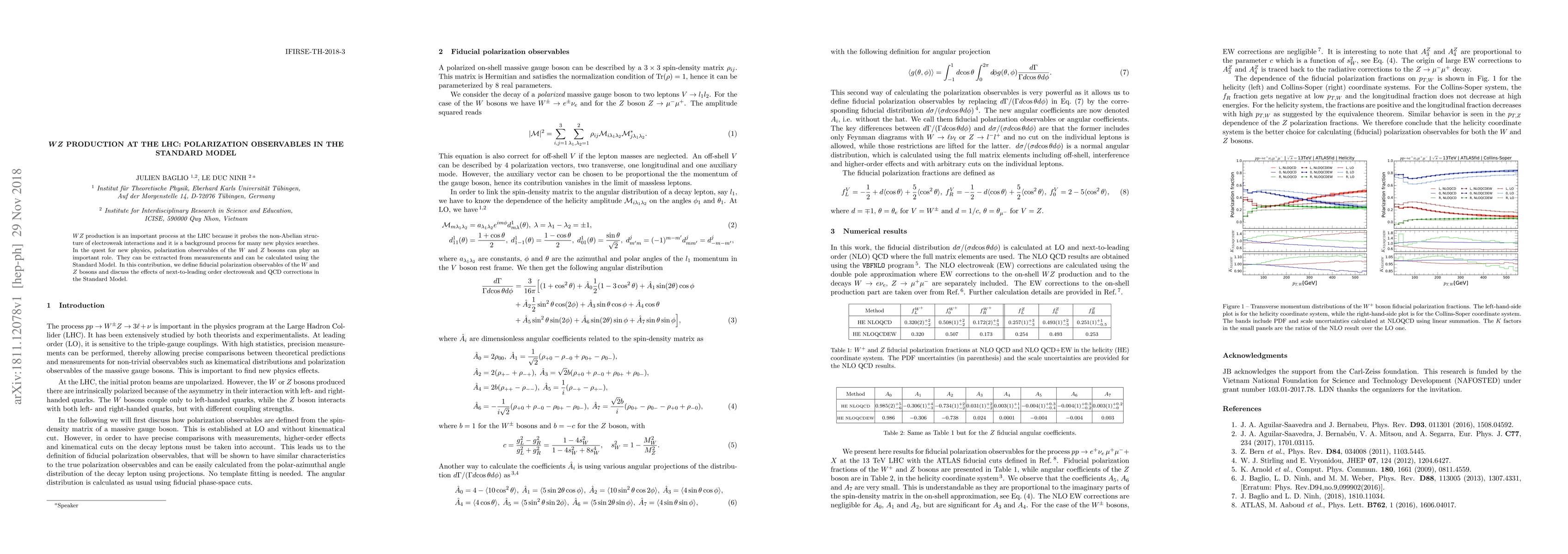 This paper explores the production of WZ bosons at the LHC, focusing on polarization observables that can help detect new physics. It defines fiducial polarization observables and discusses corrections to calculate them accurately in the Standard Model.