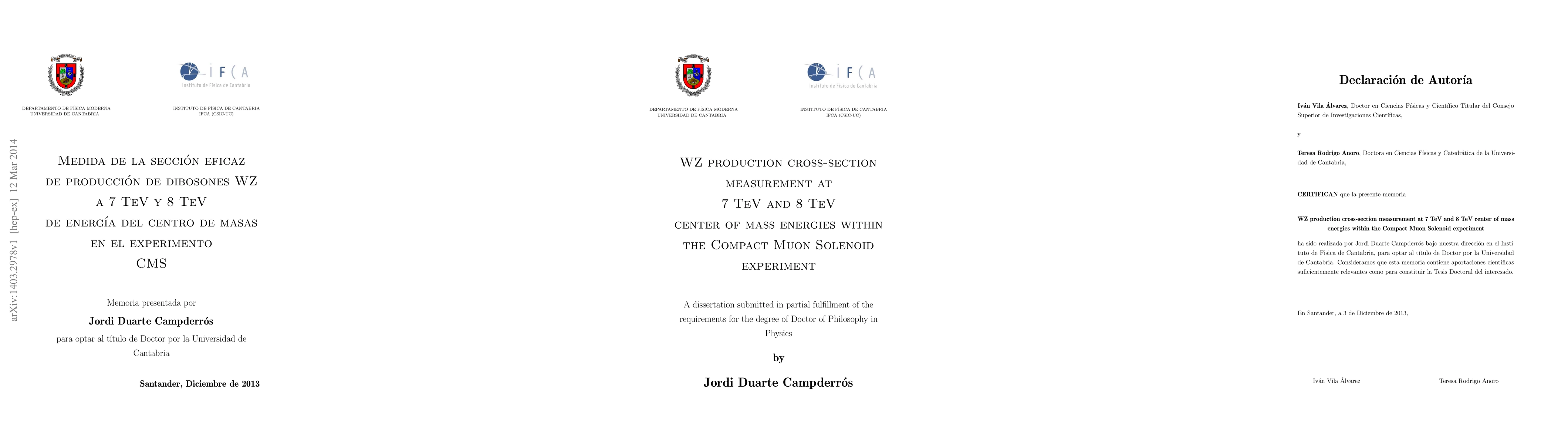 The WZ associated diboson production is studied by measuring both inclusive cross section and, for the first time, the ratio between the $W^-Z$ and the $W^+Z$ cross sections. The measurements are performed using data samples of proton-proton collisions collected during the years 2011 and 2012, at 7 and 8 TeV of centre-of-mass energies, respectively, by the CMS experiment at the LHC, updating the 7 TeV cross section measurement available in CMS, and presenting the new cross section measurement in CMS at 8 TeV. The data sample used for the 7 TeV measurements correspond to an integrated luminosity of 4.9 $fb^{-1}$, whence the data for the 8 TeV correspond to $\mathcal{L}_{int}=19.6~fb^{-1}$. The obtained results are found compatible with the Standard Model predictions.
