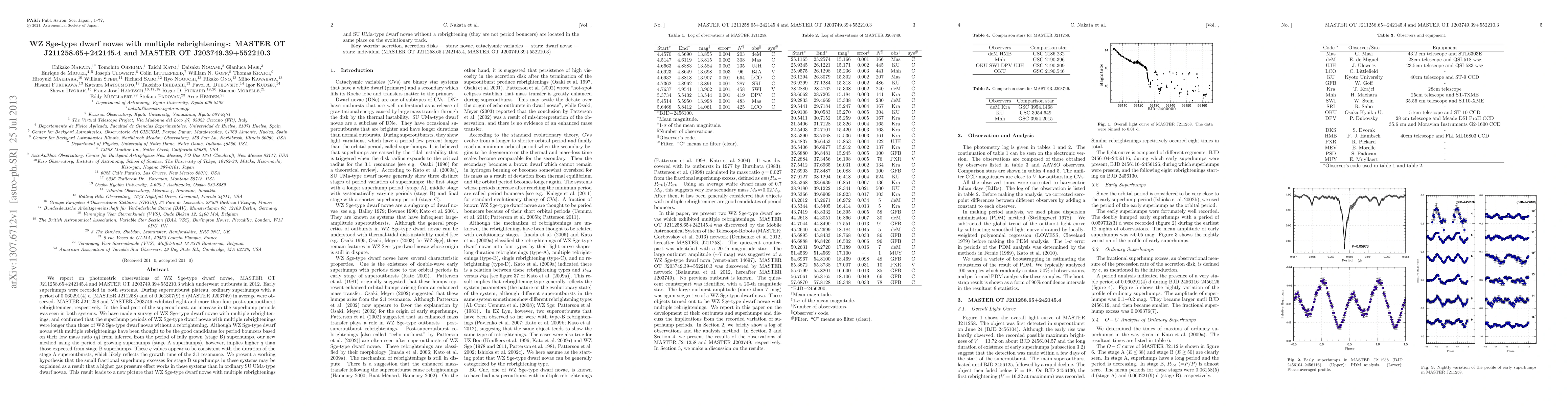 This paper reports on the photometric observations of two WZ Sge-type dwarf novae, MASTER OT J211258.65+242145.4 and MASTER OT J203749.39+552210.3, which displayed multiple rebrightenings during their outbursts. The study suggests these systems may not be period bouncers, as inferred from superhump periods, and proposes a new evolutionary model for WZ Sge-type dwarf novae with multiple rebrightenings.