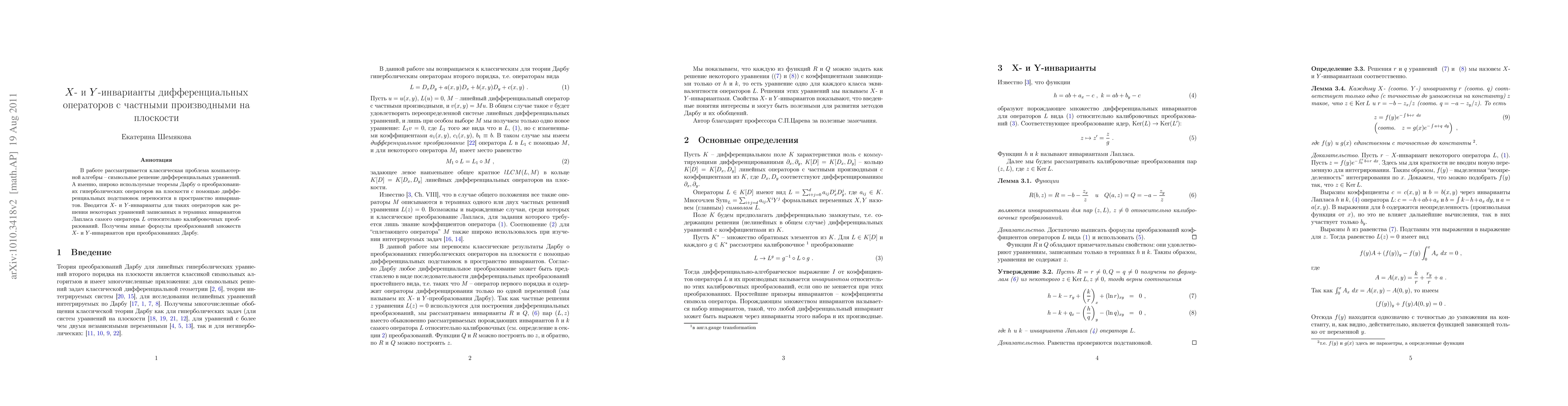 We consider a classical problem of Computer Algebra: symbolic solution of PDEs. We transform the famous Darboux theorems on differential transformations of hyperbolic operator into the space of invariants. We introduce a new idea -- $X$- and $Y$-invariants of such operator as solutions of some equations written in terms of the Laplace invariants of this operator. Explicit formula for the changes in the sets of the $X$- and $Y$-invariants under the Darboux transformations are obtained.