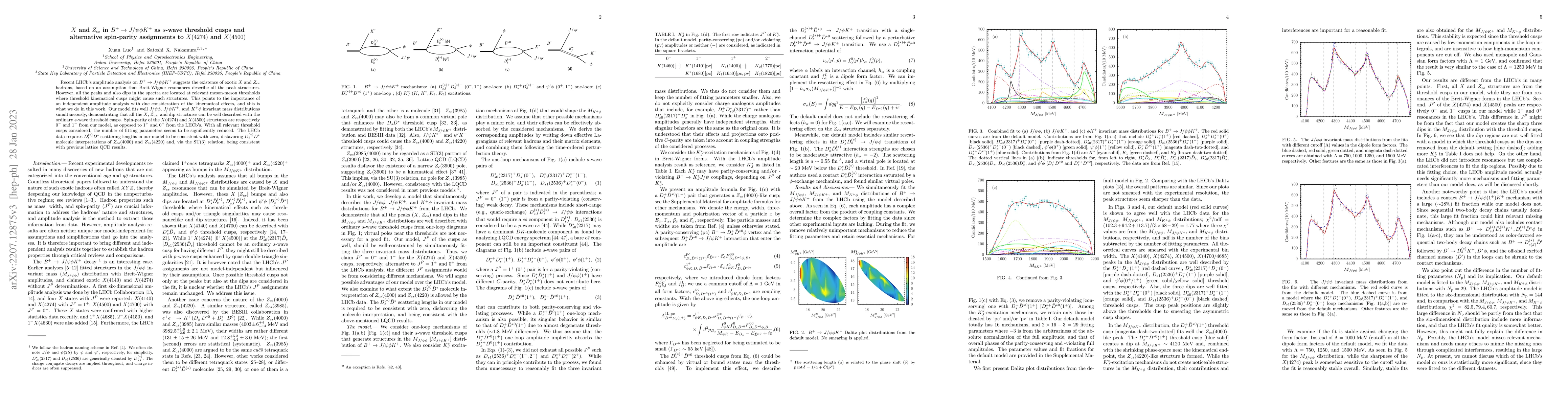 This paper proposes that the observed peaks and dips in the $B^+\to J/\psi \phi K^+$ decay spectrum, previously attributed to exotic $X$ and $Z_{cs}$ hadrons, are actually $s$-wave threshold cusps. It suggests alternative spin-parities for $X(4274)$ and $X(4500)$ and finds that considering kinematical effects reduces the number of fitting parameters.