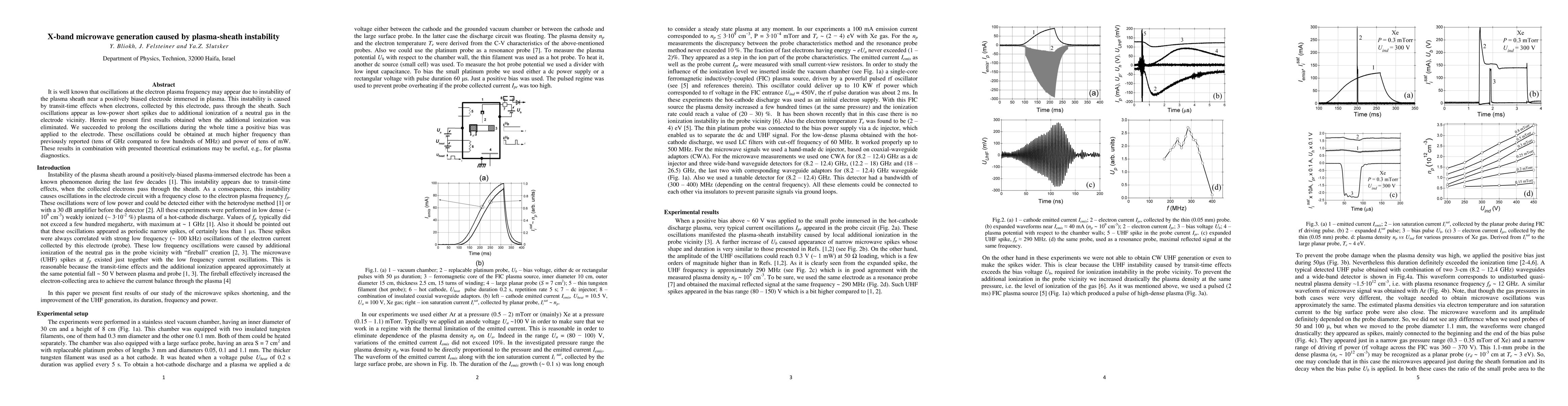 It is well known that oscillations at the electron plasma frequency may appear due to instability of the plasma sheath near a positively biased electrode immersed in plasma. This instability is caused by transit-time effects when electrons, collected by this electrode, pass through the sheath. Such oscillations appear as low-power short spikes due to additional ionization of a neutral gas in the electrode vicinity. Herein we present first results obtained when the additional ionization was eliminated. We succeeded to prolong the oscillations during the whole time a positive bias was applied to the electrode. These oscillations could be obtained at much higher frequency than previously reported (tens of GHz compared to few hundreds of MHz) and power of tens of mW. These results in combination with presented theoretical estimations may be useful, e.g., for plasma diagnostics.