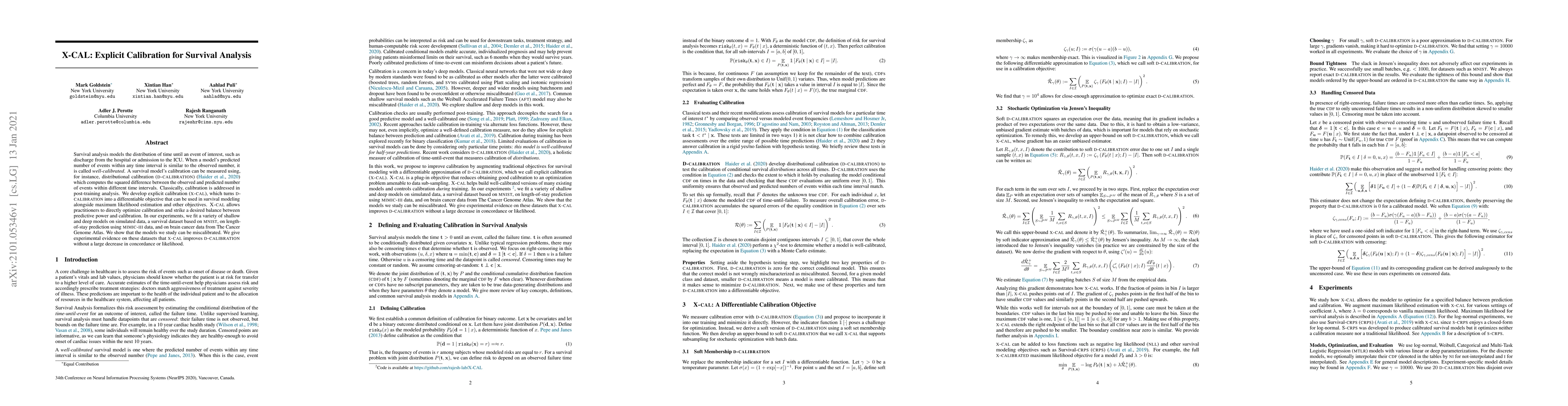 The paper introduces X-CAL, an explicit calibration method for survival analysis that transforms distributional calibration into a differentiable objective, enabling direct optimization alongside maximum likelihood estimation. Experimental results show that X-CAL improves calibration without significantly compromising predictive power on various datasets.
