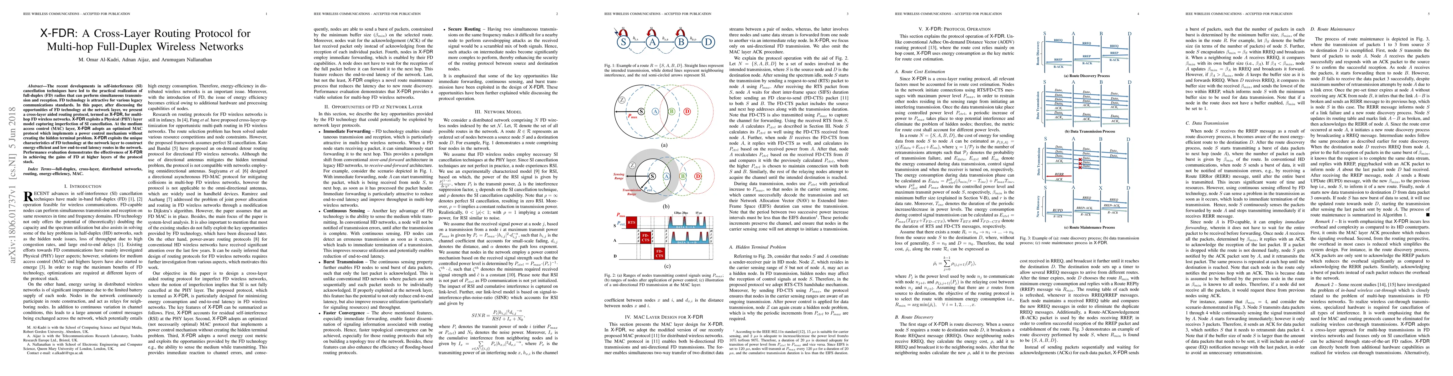 The paper introduces X-FDR, a cross-layer routing protocol for multi-hop full-duplex wireless networks, leveraging self-interference cancellation techniques to enable simultaneous transmission and reception. X-FDR optimizes routing, MAC, and PHY layers to achieve energy efficiency and lower latency.