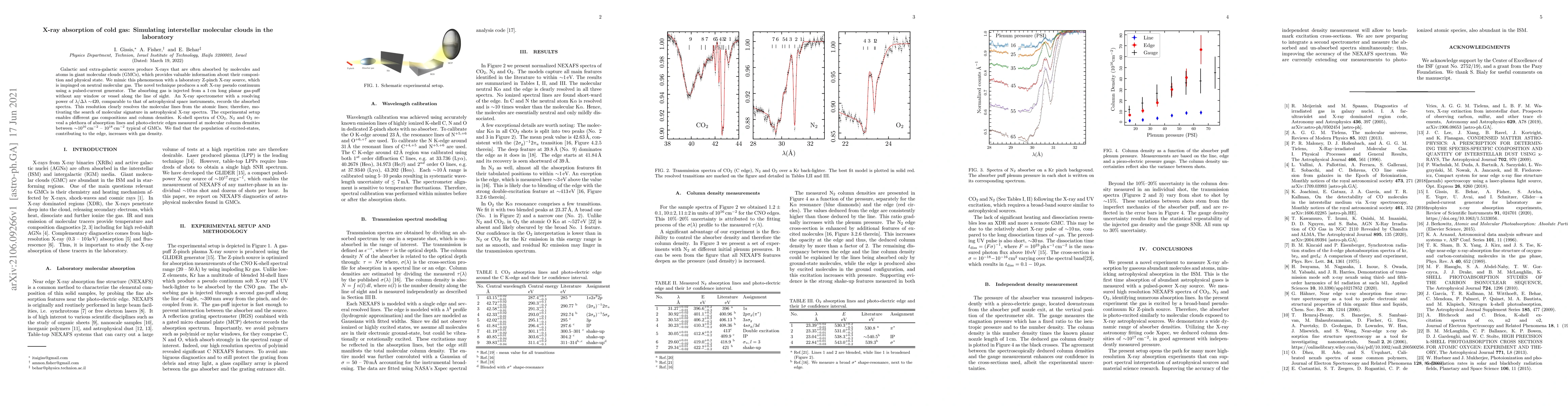This research simulates the X-ray absorption by cold gas in interstellar molecular clouds using a laboratory Z-pinch X-ray source, revealing molecular signatures in the absorbed spectra. The study finds that excited-state populations increase with gas density, providing insights into the composition and physical state of giant molecular clouds.