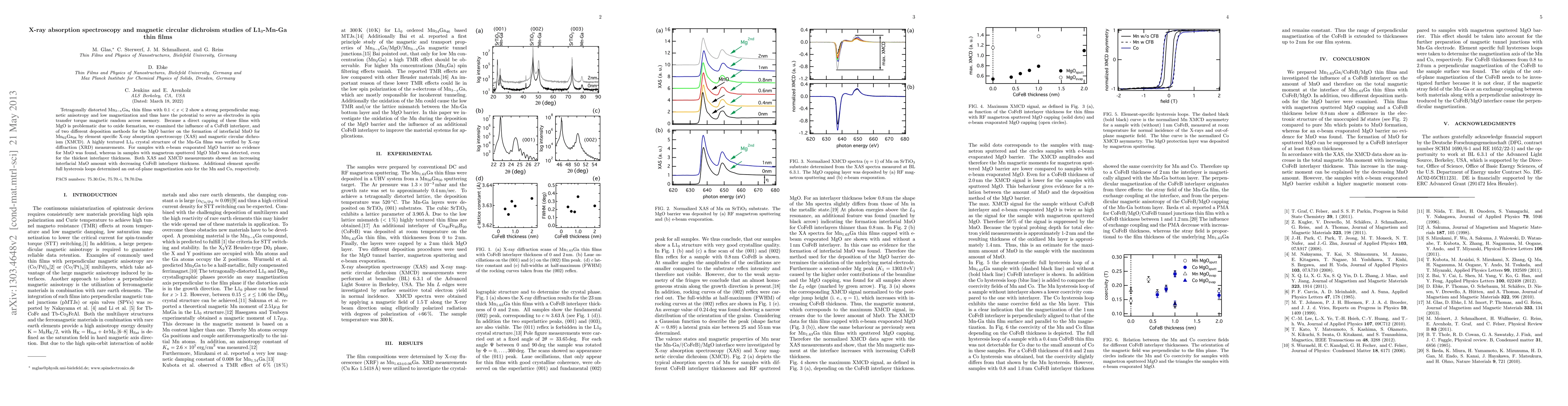 Tetragonally distorted \(\rm{Mn}_{3-x}\rm{Ga}_x\) thin films with \(0.1< x < 2\) show a strong perpendicular magnetic anisotropy and low magnetization and thus have the potential to serve as electrodes in spin transfer torque magnetic random access memory. Because a direct capping of these films with MgO is problematic due to oxide formation, we examined the influence of a CoFeB interlayer, and of two different deposition methods for the MgO barrier on the formation of interfacial MnO for \(\rm{Mn}_{62}\rm{Ga}_{38}\) by element specific X-ray absorption spectroscopy (XAS) and magnetic circular dichroism (XMCD). A highly textured L1\(_0\) crystal structure of the Mn-Ga films was verified by X-ray diffraction (XRD) measurements. For samples with e-beam evaporated MgO barrier no evidence for MnO was found, whereas in samples with magnetron sputtered MgO MnO was detected, even for the thickest interlayer thickness. Both XAS and XMCD measurements showed an increasing interfacial MnO amount with decreasing CoFeB interlayer thickness. Additional element specific full hysteresis loops determined an out-of-plane magnetization axis for the Mn and Co, respectively.