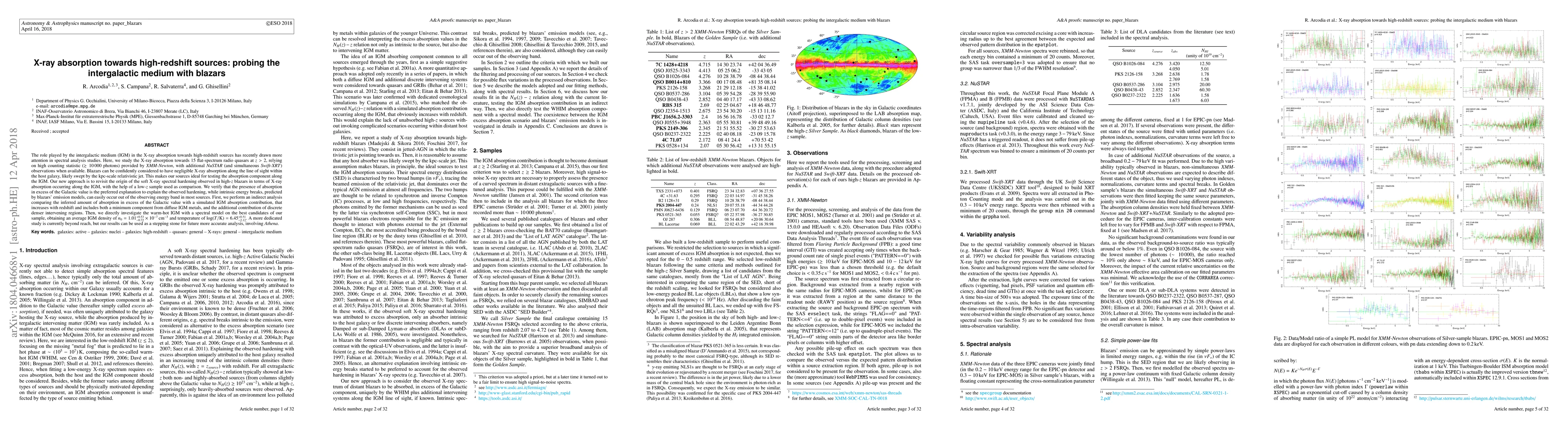The role played by the intergalactic medium (IGM) in the X-ray absorption towards high-redshift sources has recently drawn more attention in spectral analysis studies. Here, we study the X-ray absorption towards 15 flat-spectrum radio quasars at $z>2$, relying on high counting statistic ($\gtrsim10\,000$ photons) provided by XMM-Newton, with additional NuSTAR (and simultaneous Swift-XRT) observations when available. Blazars can be confidently considered to have negligible X-ray absorption along the line of sight within the host galaxy, likely swept by the kpc-scale relativistic jet. This makes our sources ideal for testing the absorption component along the IGM. Our new approach is to revisit the origin of the soft X-ray spectral hardening observed in high-z blazars in terms of X-ray absorption occurring along the IGM, with the help of a low-z sample used as comparison. We verify that the presence of absorption in excess of the Galactic value is the preferred explanation to explain the observed hardening, while intrinsic energy breaks, predicted by blazars' emission models, can easily occur out of the observing energy band in most sources. First, we perform an indirect analysis comparing the inferred amount of absorption in excess of the Galactic value with a simulated IGM absorption contribution, that increases with redshift and includes both a minimum component from diffuse IGM metals, and the additional contribution of discrete denser intervening regions. Then, we directly investigate the warm-hot IGM with a spectral model on the best candidates of our sample, obtaining an average IGM density of $n_0=1.01^{+0.53}_{-0.72}\times10^{-7}$ cm$^{-3}$ and temperature of $\log(T/\text{K})=6.45^{+0.51}_{-2.12}$. A more dedicated study is currently beyond reach, but our results can be used as a stepping stone for future more accurate analysis, involving Athena.