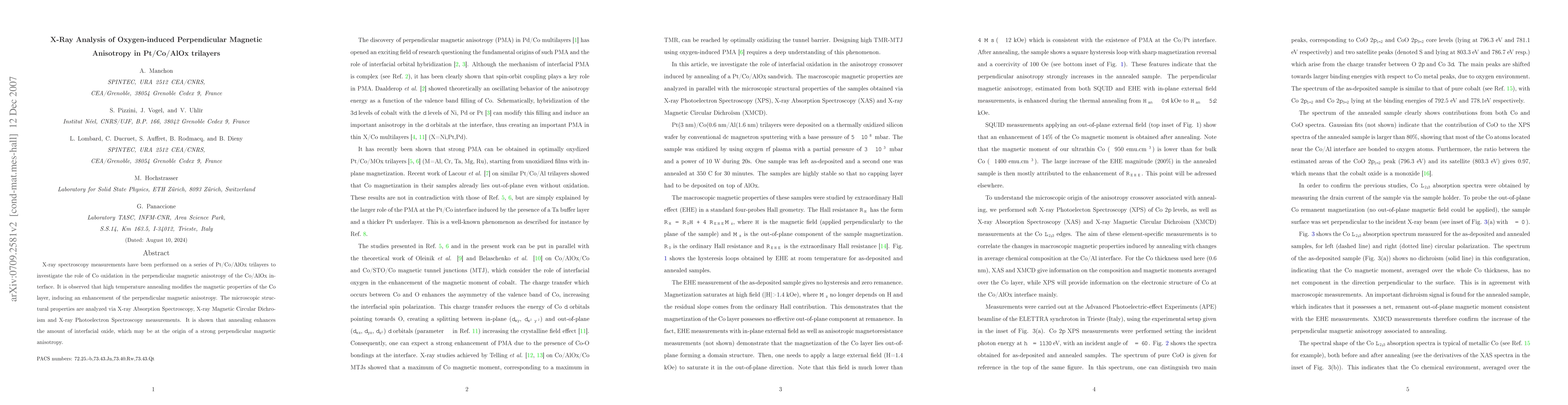 Summary: X-ray spectroscopy reveals that high-temperature annealing enhances perpendicular magnetic anisotropy in Pt/Co/AlOx trilayers by increasing interfacial oxide formation, as shown through various X-ray techniques. This modification in the Co layer's magnetic properties is attributed to the formation of more interfacial oxide.