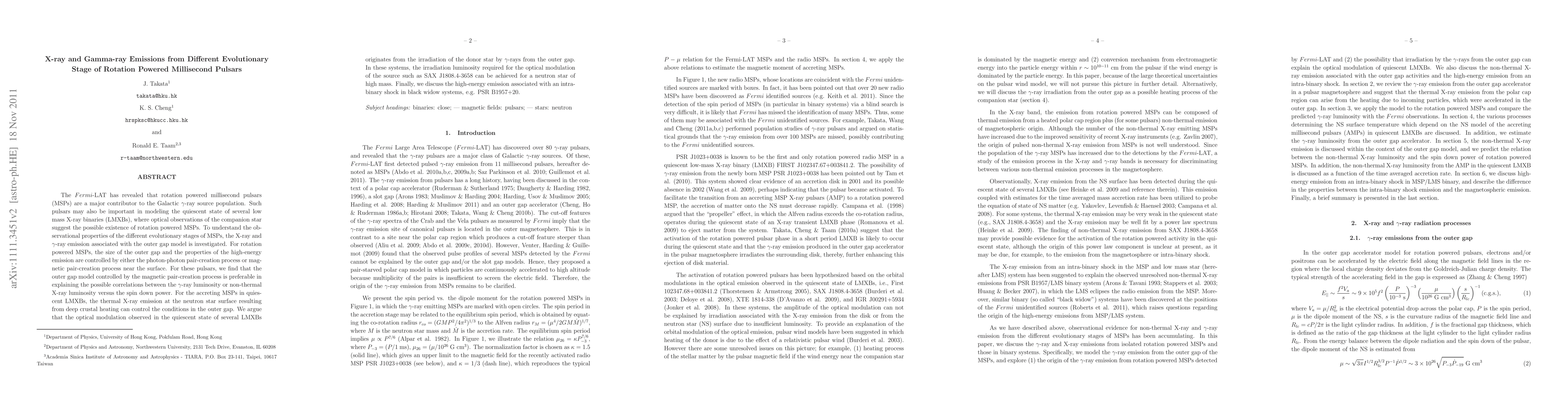 The $Fermi$-LAT has revealed that rotation powered millisecond pulsars (MSPs) are a major contributor to the Galactic $\gamma$-ray source population. Such pulsars may also be important in modeling the quiescent state of several low mass X-ray binaries (LMXBs), where optical observations of the companion star suggest the possible existence of rotation powered MSPs. To understand the observational properties of the different evolutionary stages of MSPs, the X-ray and $\gamma$-ray emission associated with the outer gap model is investigated. For rotation powered MSPs, the size of the outer gap and the properties of the high-energy emission are controlled by either the photon-photon pair-creation process or magnetic pair-creation process near the surface. For these pulsars, we find that the outer gap model controlled by the magnetic pair-creation process is preferable in explaining the possible correlations between the $\gamma$-ray luminosity or non-thermal X-ray luminosity versus the spin down power. For the accreting MSPs in quiescent LMXBs, the thermal X-ray emission at the neutron star surface resulting from deep crustal heating can control the conditions in the outer gap. We argue that the optical modulation observed in the quiescent state of several LMXBs originates from the irradiation of the donor star by $\gamma$-rays from the outer gap. In these systems, the irradiation luminosity required for the optical modulation of the source such as SAX J1808.4-3658 can be achieved for a neutron star of high mass. Finally, we discuss the high-energy emission associated with an intra-binary shock in black widow systems, e.g. PSR B1957+20.
