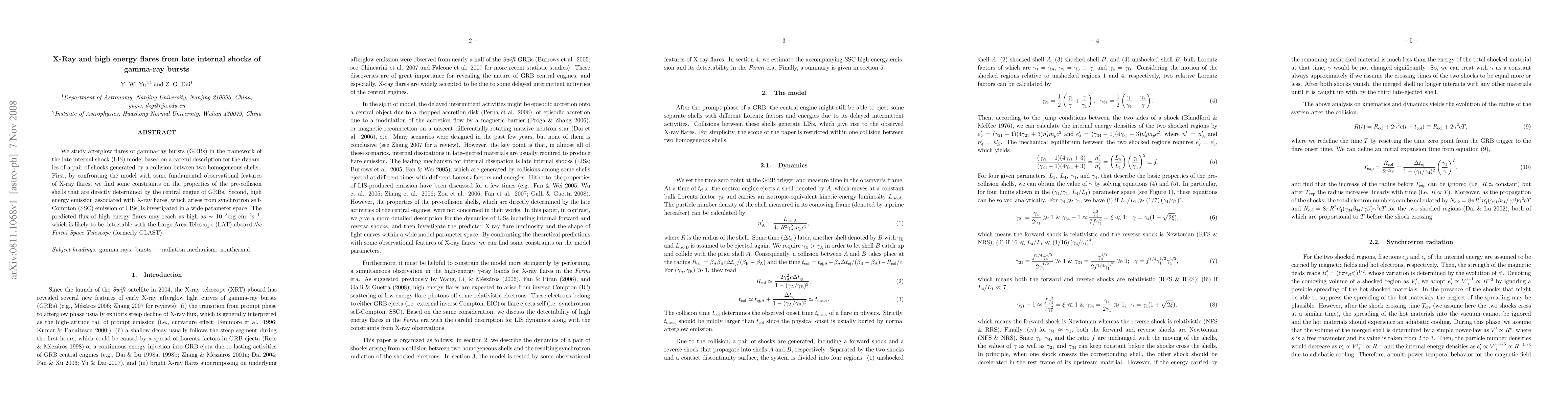 This paper investigates gamma-ray burst afterglow flares within the late internal shock model, determining constraints on pre-collision shell properties and predicting high-energy synchrotron self-Compton emissions detectable by the Fermi Space Telescope's Large Area Telescope.