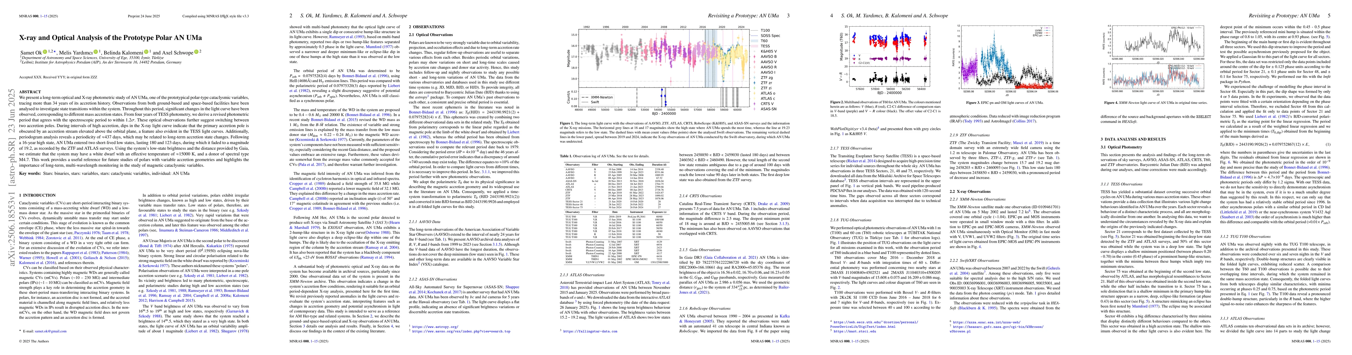 We present a long-term optical and X-ray photometric study of AN UMa, one of the prototypical polar-type cataclysmic variables, tracing more than 34 years of its accretion history. Observations from both ground-based and space-based facilities have been analysed to investigate state transitions within the system. Throughout this period, significant changes in the light curve have been observed, corresponding to different mass accretion states. From four years of TESS photometry, we derive a revised photometric period that agrees with the spectroscopic period to within 1.2$\sigma$. These optical observations further suggest switching between two accretion poles. During intervals of high accretion, dips in the X-ray light curve indicate that the primary accretion pole is obscured by an accretion stream elevated above the orbital plane, a feature also evident in the TESS light curves. Additionally, periodogram analysis reveals a periodicity of $\approx$437 days, which may be related to long-term accretion state changes. Following a 16-year high state, AN UMa entered two short-lived low states, lasting 180 and 123 days, during which it faded to a magnitude of 19.2, as recorded by the ZTF and ATLAS surveys. Using the system's low-state brightness and the distance provided by Gaia, we estimate that the system may have a white dwarf with an effective temperature of $\approx$15000~K, and a donor of spectral type M4.7. This work provides a useful reference for future studies of polars with variable accretion geometries and highlights the importance of long-term, multi-wavelength monitoring in the study of magnetic cataclysmic variables.