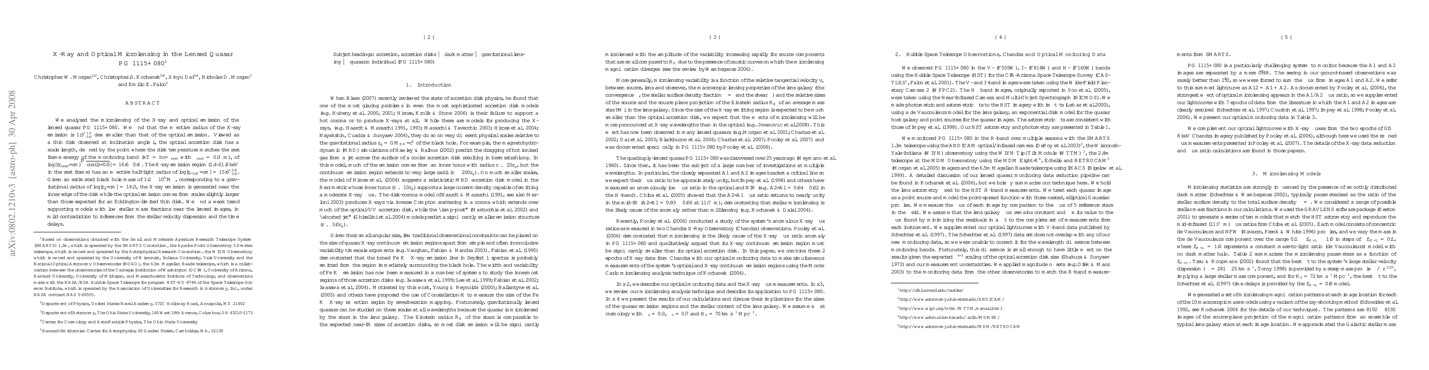 This study investigates microlensing effects in the X-ray and optical emissions of the lensed quasar PG 1115+080, revealing that the X-ray emission region is significantly smaller than the optical emission region. The X-ray emission is found to originate near the inner edge of the accretion disk, while the optical emission comes from slightly larger scales, suggesting a potential discrepancy in stellar mass fractions near the lensed images.