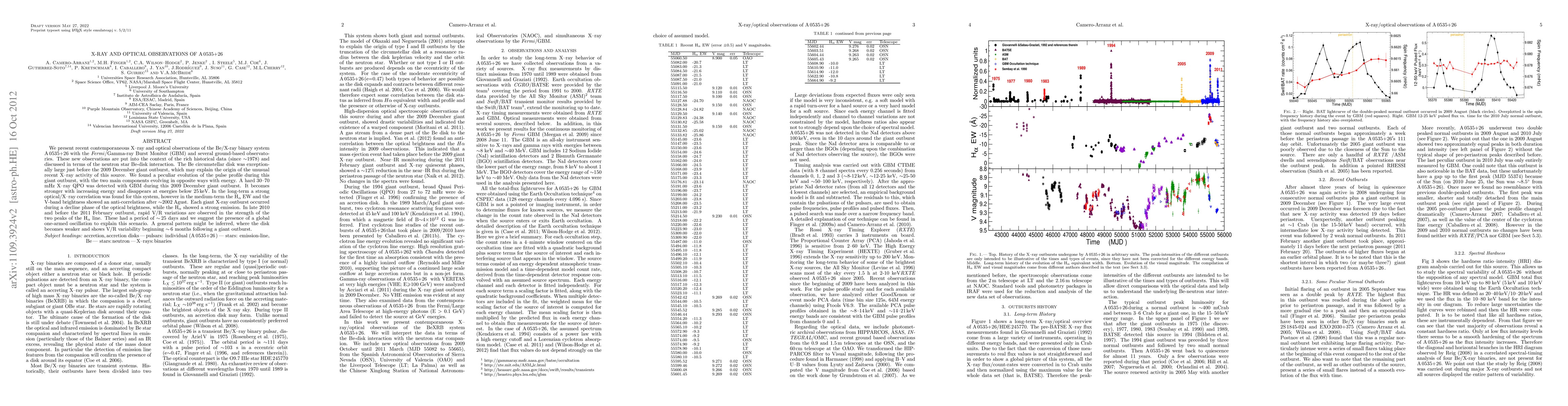 We present recent contemporaneous X-ray and optical observations of the Be/X-ray binary system A\,0535+26 with the \textit{Fermi}/Gamma-ray Burst Monitor (GBM) and several ground-based observatories. These new observations are put into the context of the rich historical data (since $\sim$1978) and discussed in terms of the neutron star Be-disk interaction. The Be circumstellar disk was exceptionally large just before the 2009 December giant outburst, which may explain the origin of the unusual recent X-ray activity of this source. We found a peculiar evolution of the pulse profile during this giant outburst, with the two main components evolving in opposite ways with energy. A hard 30-70 mHz X-ray QPO was detected with GBM during this 2009 December giant outburst. It becomes stronger with increasing energy and disappears at energies below 25\,keV. In the long-term a strong optical/X-ray correlation was found for this system, however in the medium-term the H$_\alpha$ EW and the V-band brightness showed an anti-correlation after $\sim$2002 Agust. Each giant X-ray outburst occurred during a decline phase of the optical brightness, while the H$_\alpha$ showed a strong emission. In late 2010 and before the 2011 February outburst, rapid V/R variations are observed in the strength of the two peaks of the H$_\alpha$ line. These had a period of $\sim$\,25 days and we suggest the presence of a global one-armed oscillation to explain this scenario. A general pattern might be inferred, where the disk becomes weaker and shows V/R variability beginning $\sim$\,6 months following a giant outburst.