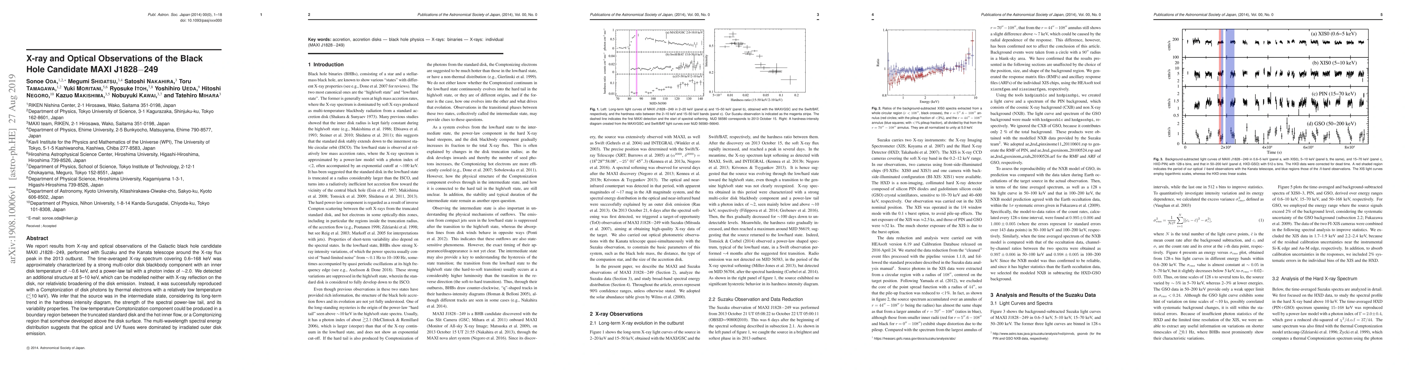 We report results from X-ray and optical observations of the Galactic black hole candidate MAXI J1828-249, performed with Suzaku and the Kanata telescope around the X-ray flux peak in the 2013 outburst. The time-averaged X-ray spectrum covering 0.6--168 keV was approximately characterized by a strong multi-color disk blackbody component with an inner disk temperature of ~0.6 keV, and a power-law tail with a photon index of ~2.0. We detected an additional structure at 5-10 keV, which can be modelled neither with X-ray reflection on the disk, nor relativistic broadening of the disk emission. Instead, it was successfully reproduced with a Comptonization of disk photons by thermal electrons with a relatively low temperature (<~10 keV). We infer that the source was in the intermediate state, considering its long-term trend in the hardness intensity diagram, the strength of the spectral power-law tail, and its variability properties. The low-temperature Comptonization component could be produced in a boundary region between the truncated standard disk and the hot inner flow, or a Comptonizing region that somehow developed above the disk surface. The multi-wavelength spectral energy distribution suggests that the optical and UV fluxes were dominated by irradiated outer disk emission.