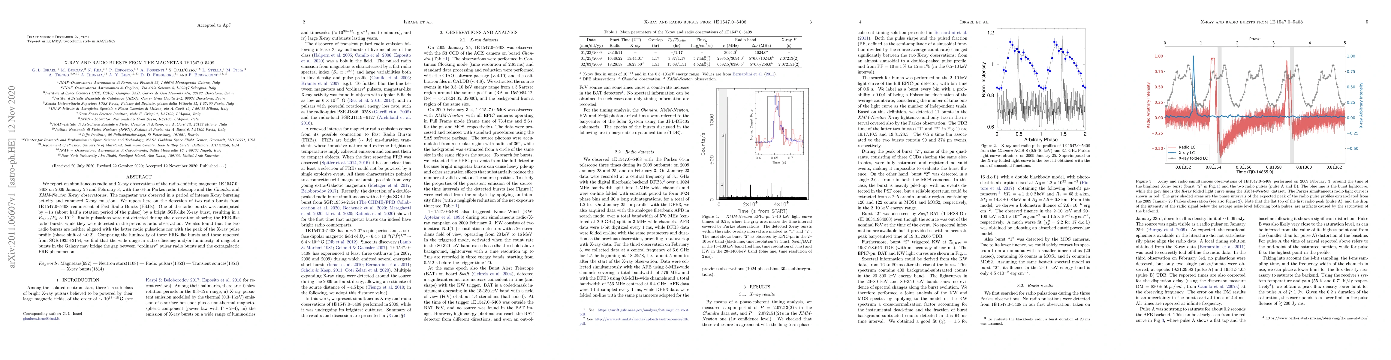 This study reports the detection of two radio bursts from the magnetar 1E1547.0-5408, resembling Fast Radio Bursts (FRBs), during a period of intense X-ray activity. One radio burst was preceded by a bright X-ray burst, highlighting a potential connection between magnetar activity and FRB phenomena.