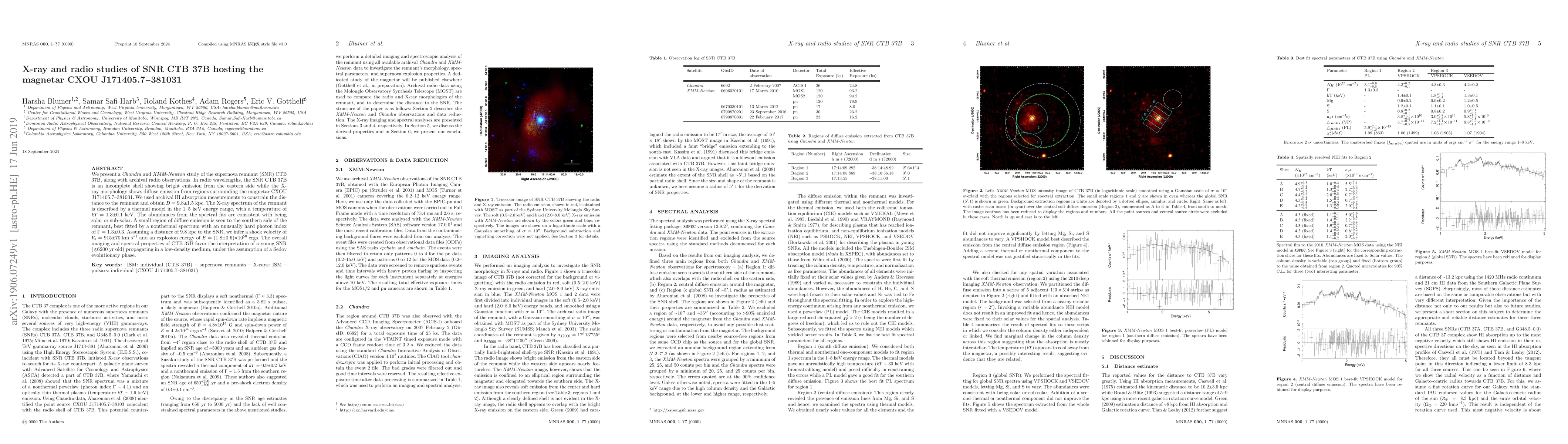 This paper presents a detailed study of the supernova remnant CTB 37B using X-ray and radio observations, revealing an incomplete shell with bright eastern radio emission and diffuse X-ray emission surrounding the magnetar CXOU J171405.7-381031. The remnant is estimated to be 9.8 kpc away, with a shock velocity of 915 km/s and an explosion energy of 1.8e50 ergs.