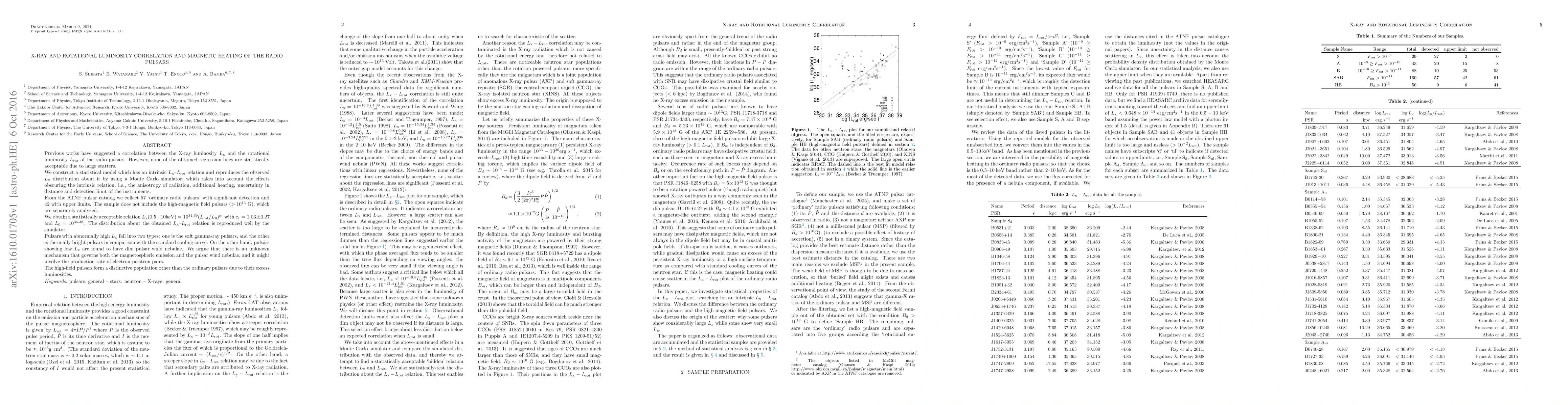 This paper establishes a statistically acceptable correlation between X-ray luminosity (Lx) and rotational luminosity (Lrot) for ordinary radio pulsars, using a Monte Carlo model to account for observational effects. It suggests an unknown mechanism governing magnetospheric emission and pulsar wind nebulae, and identifies high-field pulsars as a distinct population.
