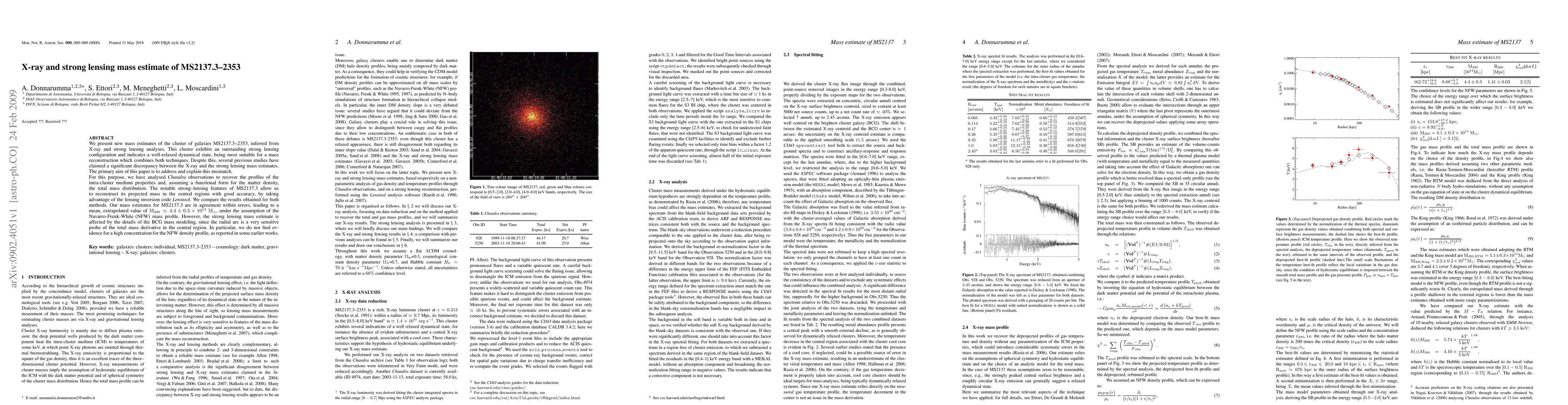 We present new mass estimates of the galaxy cluster MS2137.3-2353, inferred from X-ray and strong lensing analyses. This cluster exhibits an outstanding strong lensing configuration and indicates a well-relaxed dynamical state, being most suitable for a mass reconstruction which combines both techniques. Despite this, several previous studies have claimed a significant discrepancy between the X-ray and the strong lensing mass estimates. The primary aim of this paper is to address and explain this mismatch. For this purpose, we have analysed Chandra observations to recover the profiles of the intra-cluster medium properties and, assuming a functional form for the matter density, the total mass distribution. The notable strong-lensing features of MS2137.3 allow us to reconstruct its projected mass in the central regions with good accuracy, by taking advantage of the lensing inversion code Lenstool. We find a good agreement between our X-ray and strong lensing mass estimates for MS2137, leading to a mean, extrapolated value of M_200 ~ 4.4 +/- 0.3*10^14 M_sun, under the assumption of the Navarro-Frenk-White (NFW) density profile. However, the strong lensing mass estimate is affected by the details of the BCG mass modeling. In particular, we do not find evidence for a high concentration for the NFW density profile, as reported in some earlier works.