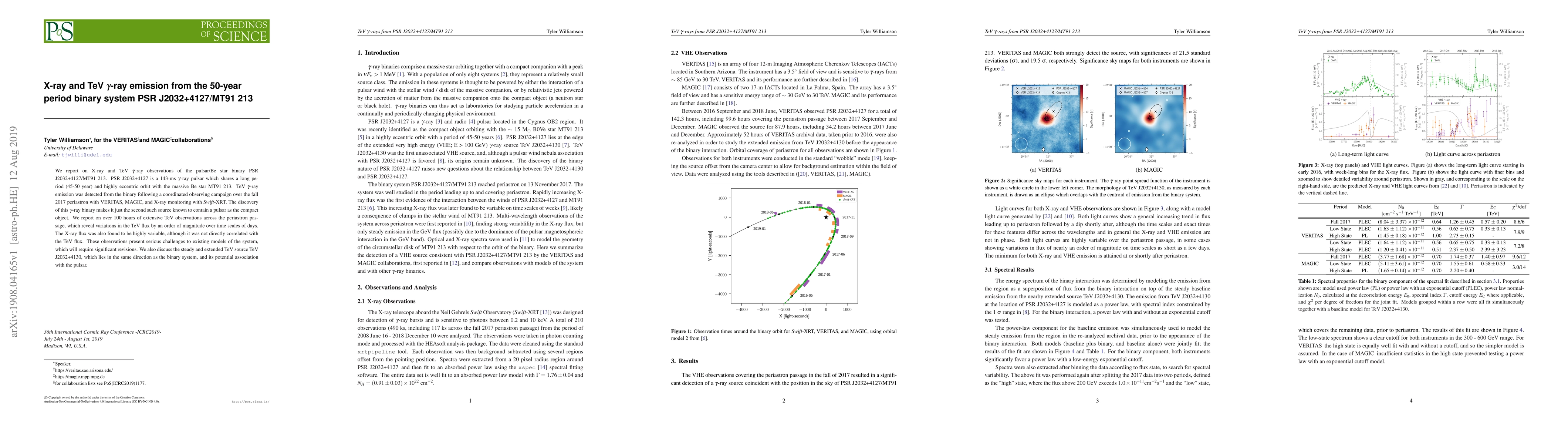 This paper reports the detection of TeV gamma-ray emission from the binary system PSR J2032+4127/MT91 213, making it the second known gamma-ray binary with a pulsar. Observations reveal significant variability in both TeV and X-ray emissions, challenging existing models.
