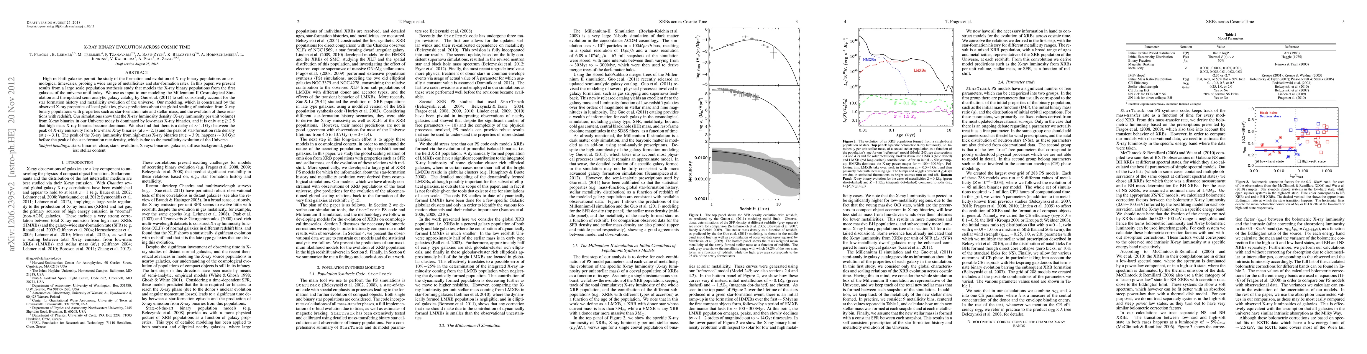 This study models the evolution of X-ray binary populations from the early universe to today using cosmological simulations and semi-analytic galaxy catalogs. It finds that low-mass X-ray binaries dominate current X-ray luminosity, while high-mass binaries peak in luminosity at z~3.9, preceding the star-formation rate peak by ~0.8 Gyr due to metallicity evolution.