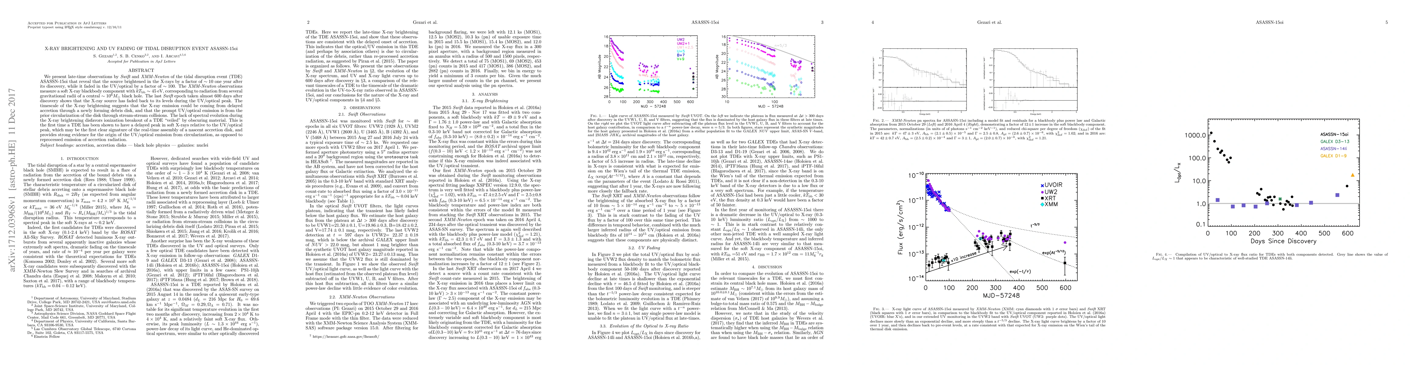 This paper reports on the X-ray brightening and UV fading of the tidal disruption event ASASSN-15oi, revealing a delayed X-ray peak relative to the UV/optical peak. The X-ray emission suggests formation of a debris disk, while the UV/optical fading indicates prior disk circularization, providing evidence against obscured material.