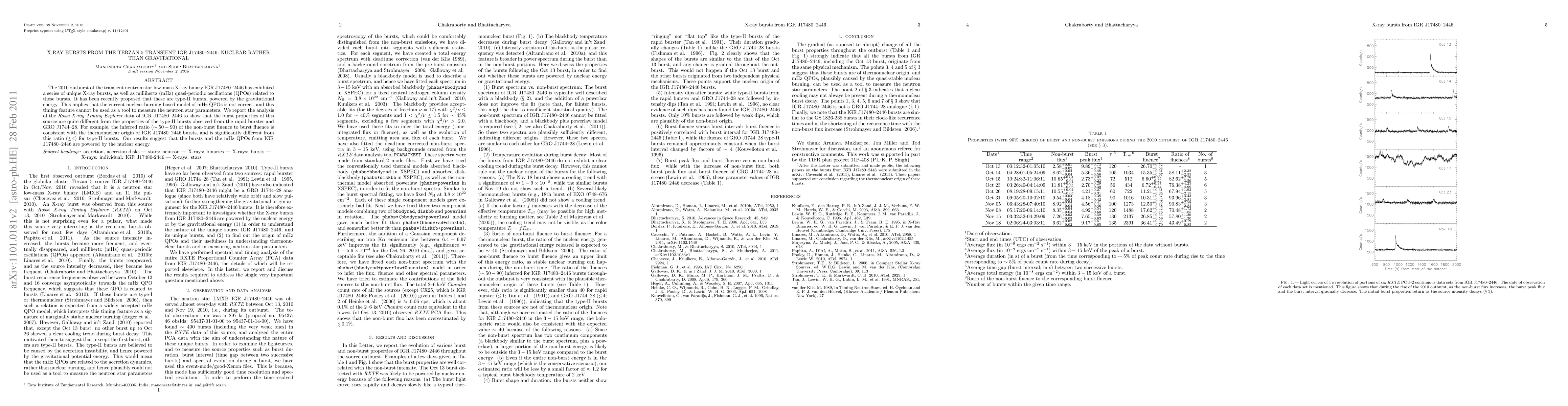The 2010 outburst of the neutron star binary IGR J17480-2446 shows unique X-ray bursts and millihertz quasi-periodic oscillations, previously thought to be type-II gravitational bursts. Analysis reveals that the bursts are thermonuclear rather than gravitational, indicating that the mHz QPOs are nuclear-powered.