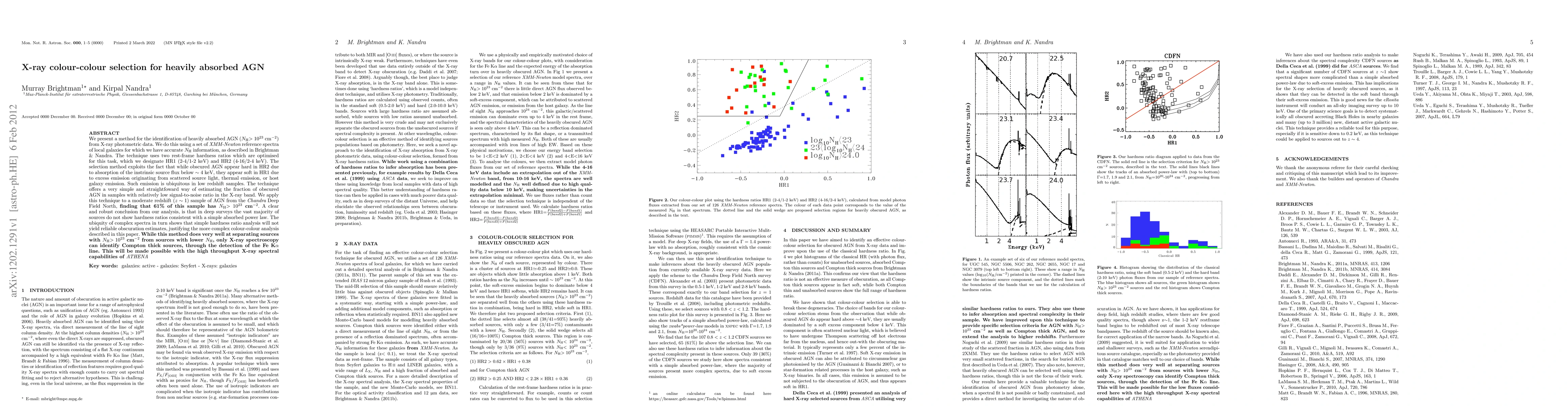 Researchers developed a method to identify heavily absorbed AGN in X-ray data using colour-colour selection, finding that 61% of a sample had NH>10^23 cm^-2, highlighting the limitations of simple hardness ratio analysis.