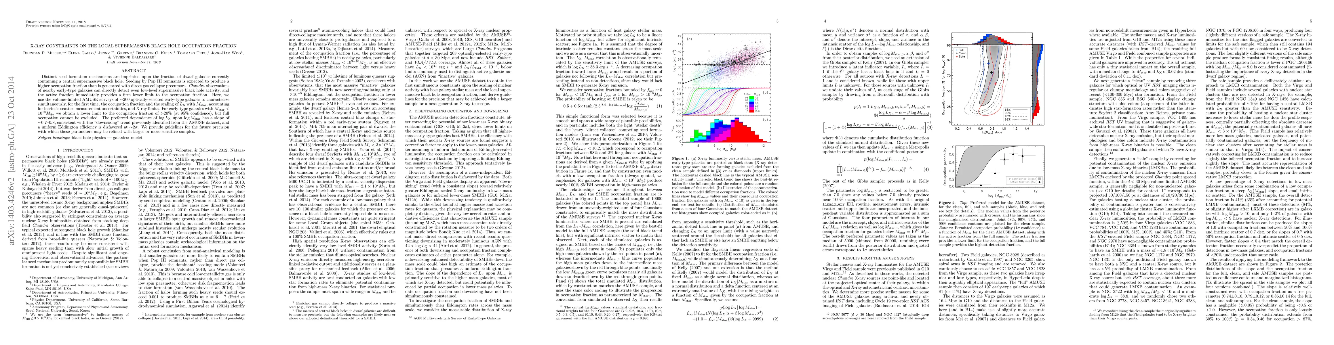 This study uses Chandra X-ray observations to determine the occupation fraction of supermassive black holes in nearby early-type galaxies, finding a lower limit of >20% for galaxies with stellar masses below 10^10 M_sun. The analysis also reveals a scaling relationship between X-ray luminosity and stellar mass with a slope of 0.7-0.8, indicating a "downsizing" trend.