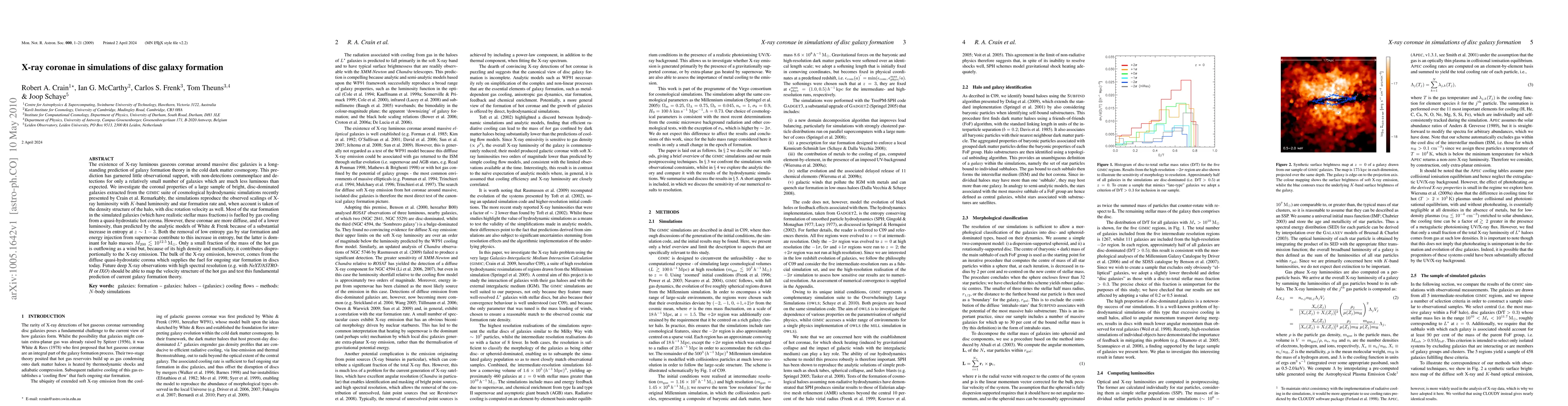 This paper explores the properties of X-ray luminous gaseous coronae in simulated disc galaxies, finding that simulations reproduce observed scalings of X-ray luminosity with galaxy properties. The coronae are less dense and luminous than predicted due to increased entropy from supernovae and gas removal by star formation, contributing to the X-ray emission.