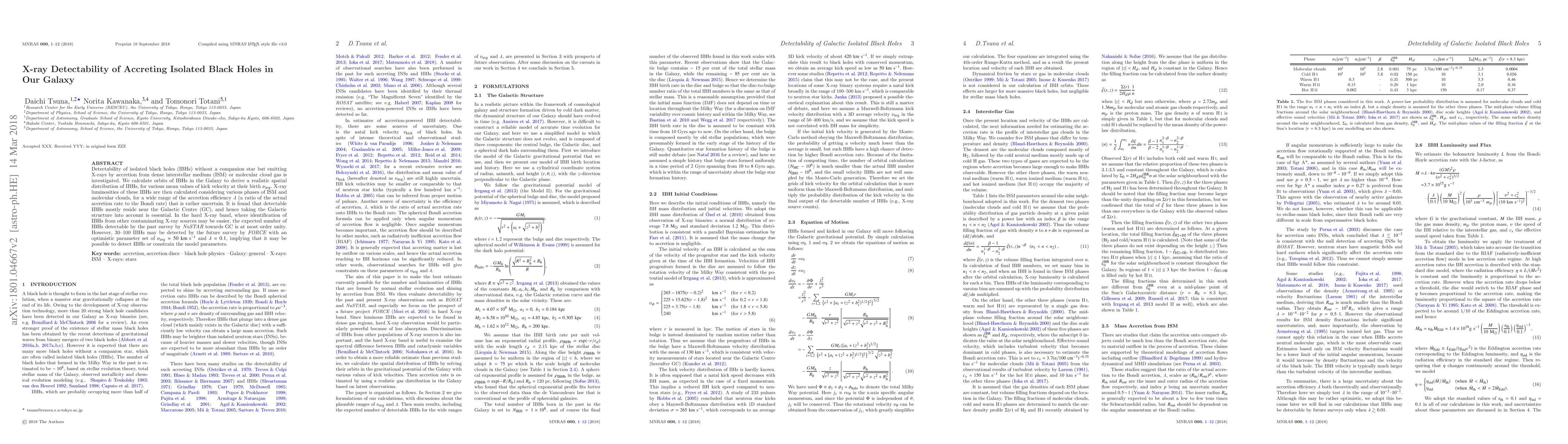 Detectability of isolated black holes (IBHs) without a companion star but emitting X-rays by accretion from dense interstellar medium (ISM) or molecular cloud gas is investigated. We calculate orbits of IBHs in the Galaxy to derive a realistic spatial distribution of IBHs, for various mean values of kick velocity at their birth $\upsilon_{\rm avg}$. X-ray luminosities of these IBHs are then calculated considering various phases of ISM and molecular clouds, for a wide range of the accretion efficiency $\lambda$ (a ratio of the actual accretion rate to the Bondi rate) that is rather uncertain. It is found that detectable IBHs mostly reside near the Galactic Centre (GC), and hence taking the Galactic structure into account is essential. In the hard X-ray band, where identification of IBHs from other contaminating X-ray sources may be easier, the expected number of IBHs detectable by the past survey by NuSTAR towards GC is at most order unity. However, 30--100 IBHs may be detected by the future survey by FORCE with an optimistic parameter set of $\upsilon_{\rm avg} = 50 \ \mathrm{km\ s^{-1}}$ and $\lambda = 0.1$, implying that it may be possible to detect IBHs or constrain the model parameters.