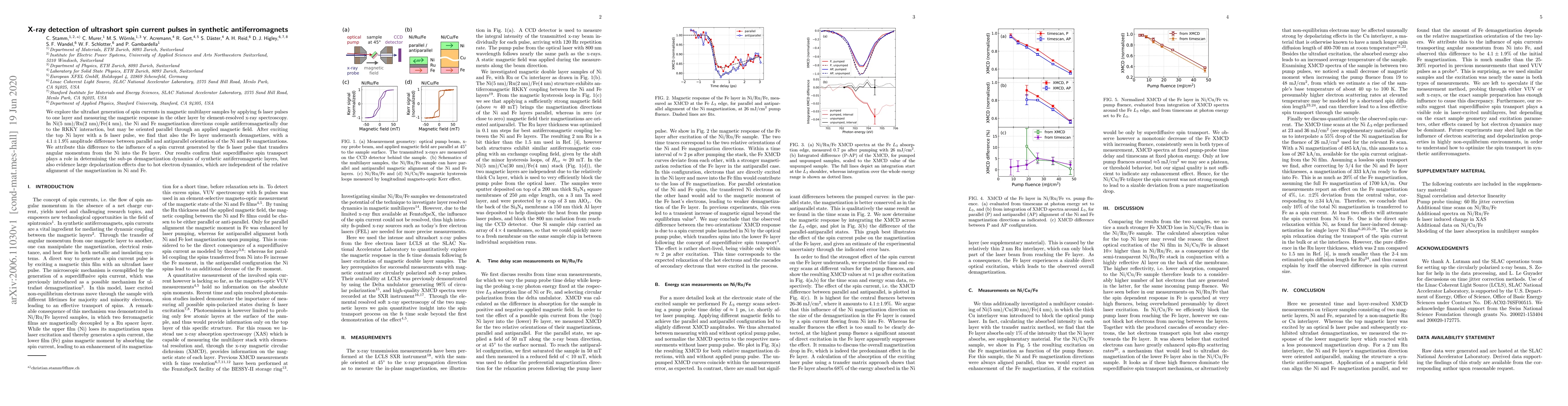 We explore the ultrafast generation of spin currents in magnetic multilayer samples by applying fs laser pulses to one layer and measuring the magnetic response in the other layer by element-resolved x-ray spectroscopy. In Ni(5~nm)/Ru(2~nm)/Fe(4~nm), the Ni and Fe magnetization directions couple antiferromagnetically due to the RKKY interaction, but may be oriented parallel through an applied magnetic field. After exciting the top Ni layer with a fs laser pulse, we find that also the Fe layer underneath demagnetizes, with a $4.1 \pm 1.9$\% amplitude difference between parallel and antiparallel orientation of the Ni and Fe magnetizations. We attribute this difference to the influence of a spin current generated by the fs laser pulse that transfers angular momentum from the Ni into the Fe layer. Our results confirm that superdiffusive spin transport plays a role in determining the sub-ps demagnetization dynamics of synthetic antiferromagnetic layers, but also evidence large depolarization effects due to hot electron dynamics, which are independent of the relative alignment of the magnetization in Ni and Fe.