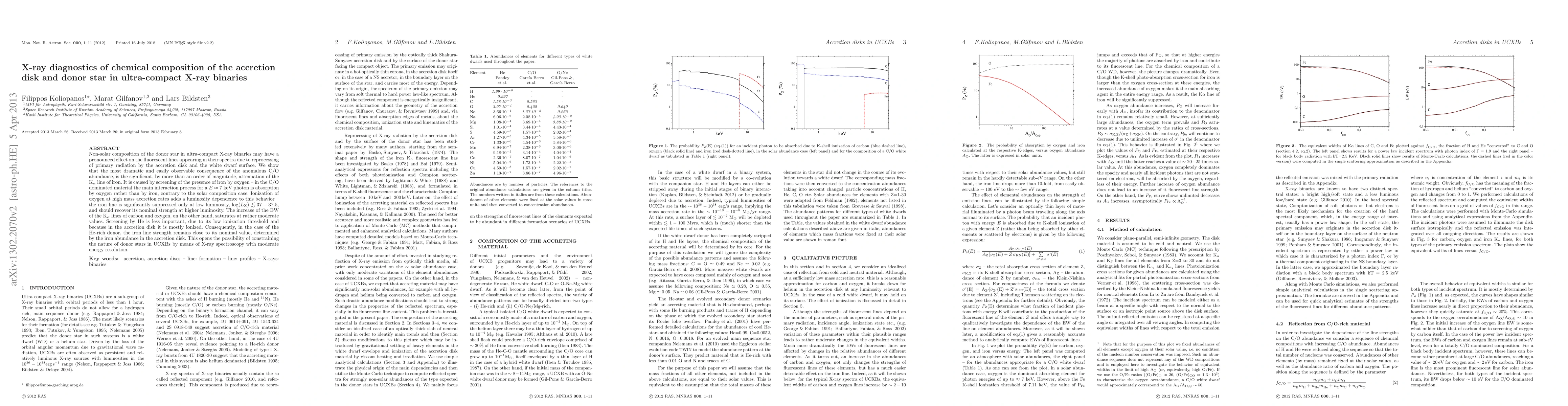 This paper investigates the impact of non-solar chemical composition in donor stars of ultra-compact X-ray binaries on X-ray spectra, finding that anomalous C/O abundances significantly attenuate the iron Ka line due to oxygen screening. The study suggests that X-ray spectroscopy can help constrain the nature of donor stars in these binaries.