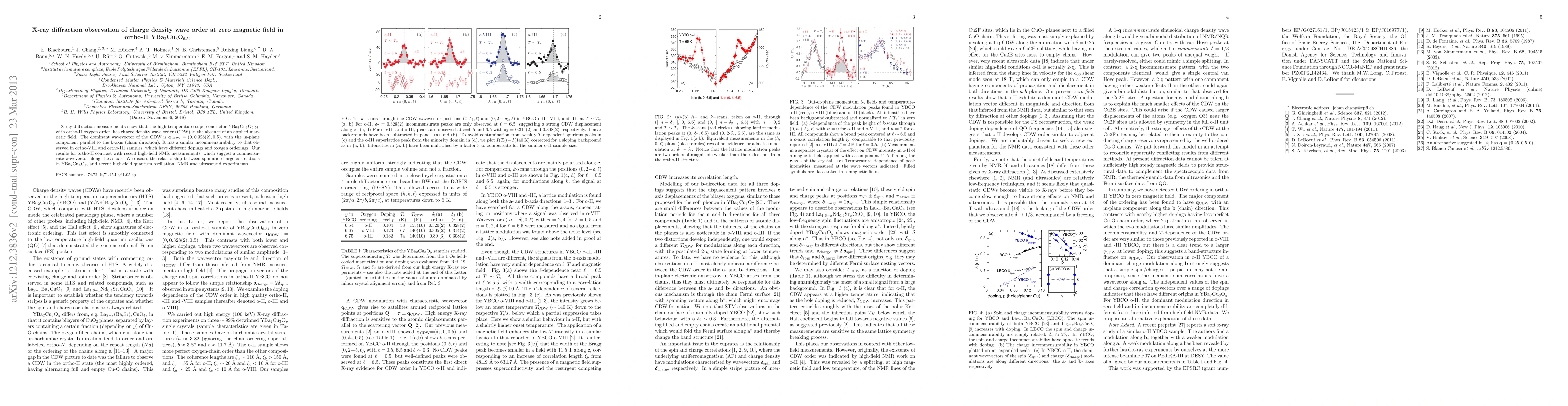 X-ray diffraction measurements show that the high-temperature superconductor YBa$_2$Cu$_3$O$_{6.54}$, with ortho-II oxygen order, has charge density wave order (CDW) in the absence of an applied magnetic field. The dominant wavevector of the CDW is $\mathbf{q}_{\mathrm{CDW}} = (0, 0.328(2), 0.5)$, with the in-plane component parallel to the $\mathbf{b}$-axis (chain direction). It has a similar incommensurability to that observed in ortho-VIII and ortho-III samples, which have different dopings and oxygen orderings. Our results for ortho-II contrast with recent high-field NMR measurements, which suggest a commensurate wavevector along the $\mathbf{a}$-axis. We discuss the relationship between spin and charge correlations in YBa$_2$Cu$_3$O$_{y}$, and recent high-field quantum oscillation, NMR and ultrasound experiments.