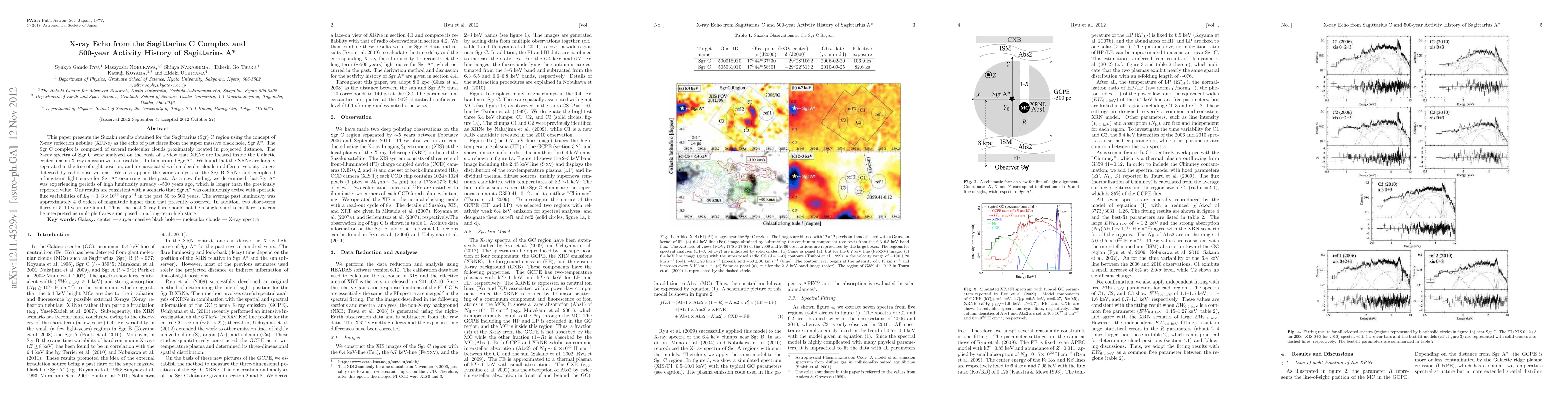 This paper presents the Suzaku results obtained for the Sagittarius (Sgr) C region using the concept of X-ray reflection nebulae (XRNe) as the echo of past flares from the super massive black hole, Sgr A*. The Sgr C complex is composed of several molecular clouds proximately located in projected distance. The X-ray spectra of Sgr C were analyzed on the basis of a view that XRNe are located inside the Galactic center plasma X-ray emission with an oval distribution around Sgr A*. We found that the XRNe are largely separated in the line-of-sight position, and are associated with molecular clouds in different velocity ranges detected by radio observations. We also applied the same analysis to the Sgr B XRNe and completed a long-term light curve for Sgr A* occurring in the past. As a new finding, we determined that Sgr A* was experiencing periods of high luminosity already 500 years ago, which is longer than the previously reported value. Our results are consistent with a scenario that Sgr A* was continuously active with sporadic flux variabilities of Lx = 1-3 x 10^39 erg s^-1 in the past 50 to 500 years. The average past luminosity was approximately 4-6 orders of magnitude higher than that presently observed. In addition, two short-term flares of 5-10 years are found. Thus, the past X-ray flare should not be a single short-term flare, but can be interpreted as multiple flares superposed on a long-term high state.