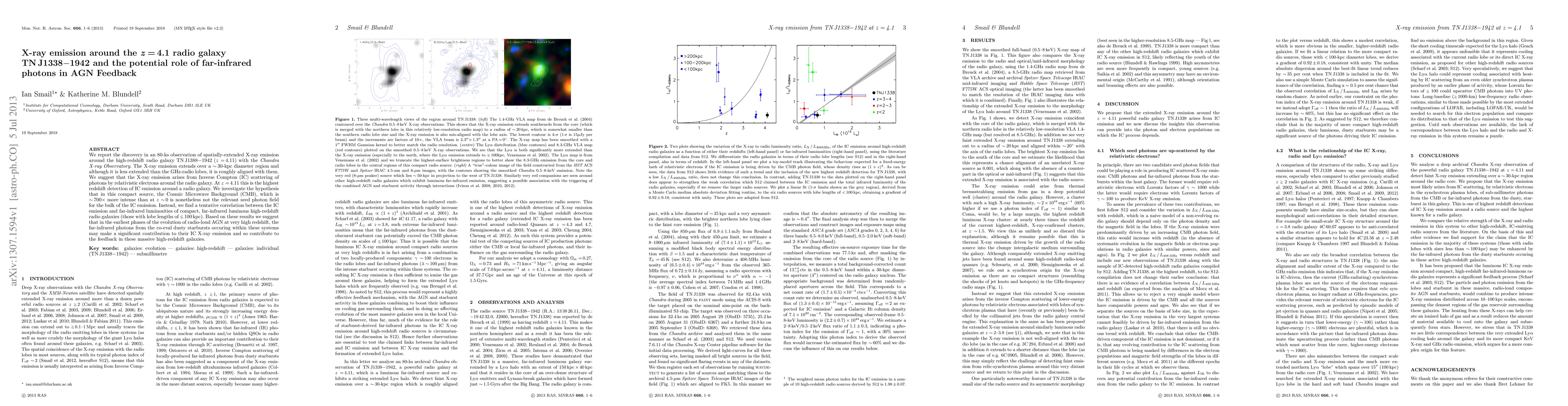 This paper reports the discovery of extended X-ray emission around the high-redshift radio galaxy TNJ1338-1942, suggesting it arises from Inverse Compton scattering by relativistic electrons. The study proposes that far-infrared photons from co-eval starbursts, rather than the Cosmic Microwave Background, may significantly contribute to the X-ray emission, indicating a potential role in AGN feedback.