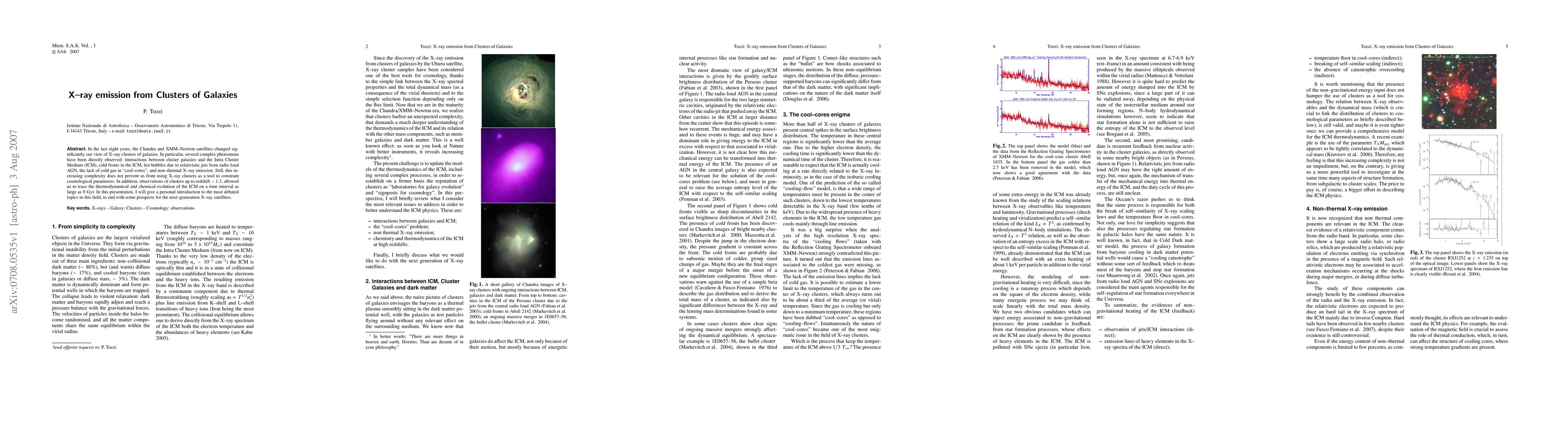 This paper reviews recent advancements in X-ray observations of galaxy clusters, highlighting phenomena like interactions between galaxies and the Intra Cluster Medium, cold fronts, and non-thermal emissions. It underscores the utility of these clusters in constraining cosmological parameters and tracing the ICM's thermodynamical and chemical evolution over 8 Gyr, concluding with future prospects for next-generation X-ray satellites.