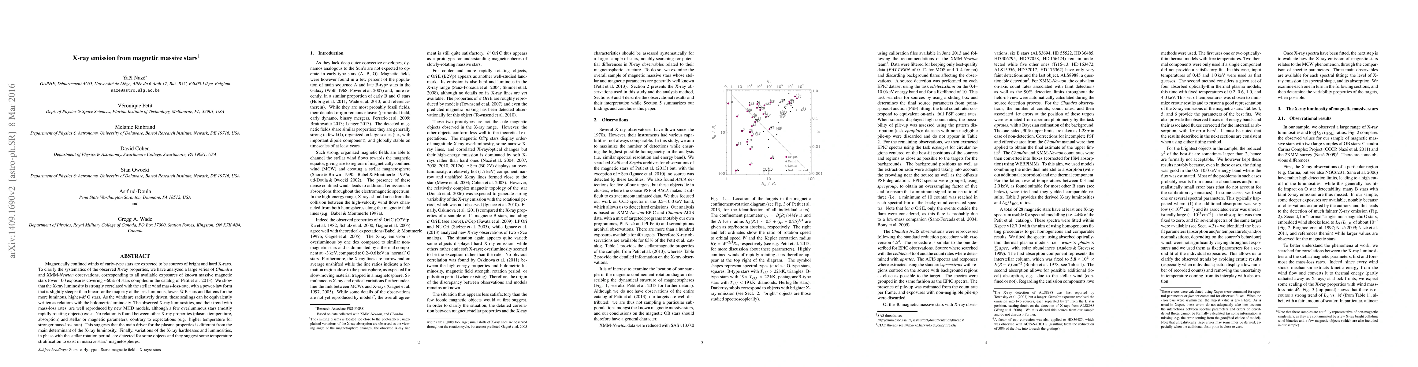 This study investigates the X-ray emission from magnetic massive stars using Chandra and XMM observations, revealing a strong correlation between X-ray luminosity and stellar wind mass-loss rate, with new MHD models supporting these findings. No clear relation is found between X-ray properties and stellar or magnetic parameters, indicating different drivers for plasma properties and X-ray luminosity.
