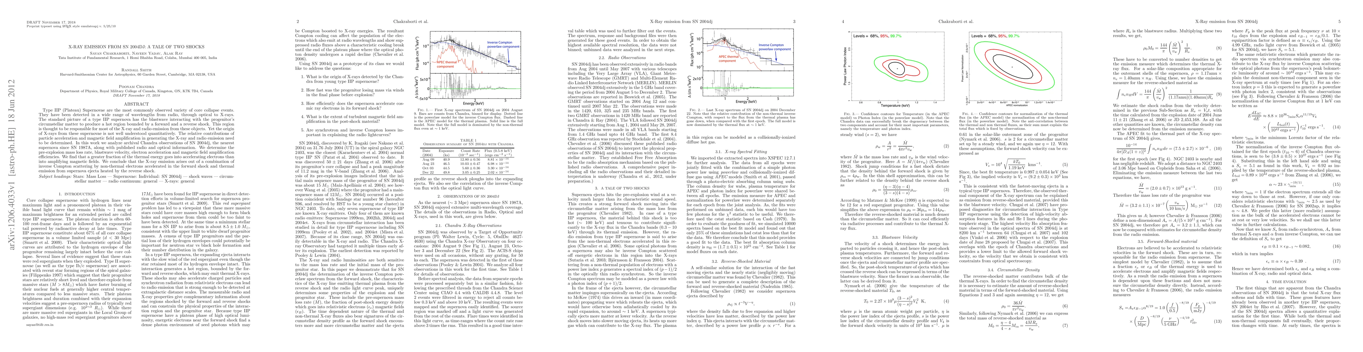 This paper analyzes X-ray emissions from SN 2004dj, revealing that the X-ray emission results from inverse Compton scattering by non-thermal electrons in the forward shock and thermal emission from heated ejecta in the reverse shock. The study finds that electron acceleration plays a more significant role than magnetic field amplification in generating the X-ray emissions.