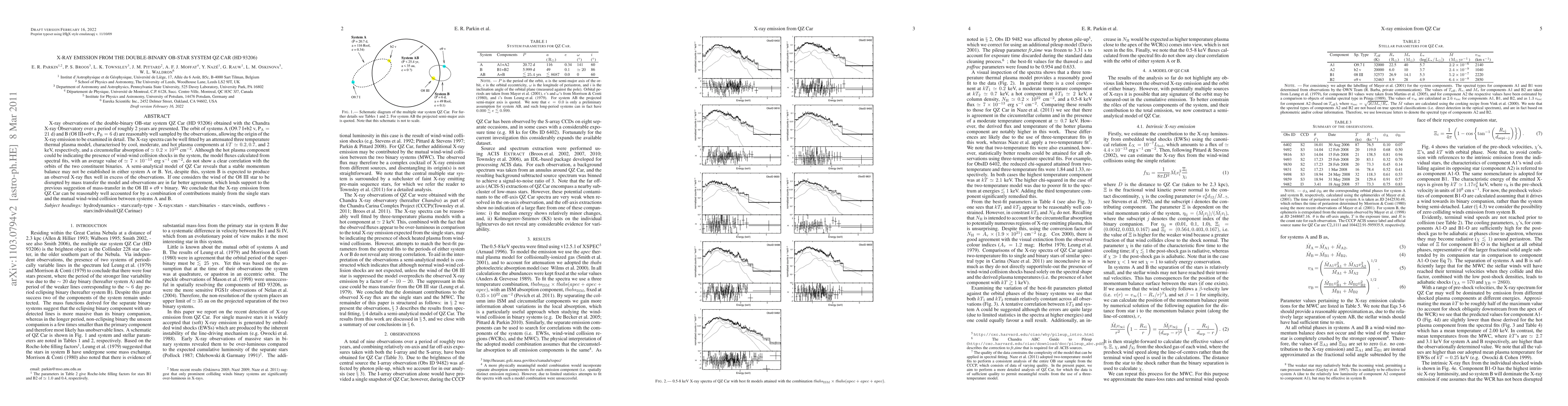 This study uses Chandra X-ray Observatory data to analyze the X-ray emission from the double-binary OB-star system QZ Car (HD 93206). The X-ray spectra suggest contributions from cool, moderate, and hot plasmas, with the hot component possibly indicating wind-wind collision shocks. Despite theoretical models indicating potential instability, the observed X-ray flux is best explained by considering disrupted winds due to mass transfer in the O8 III + o9 v binary, supporting previous mass-transfer hypotheses.